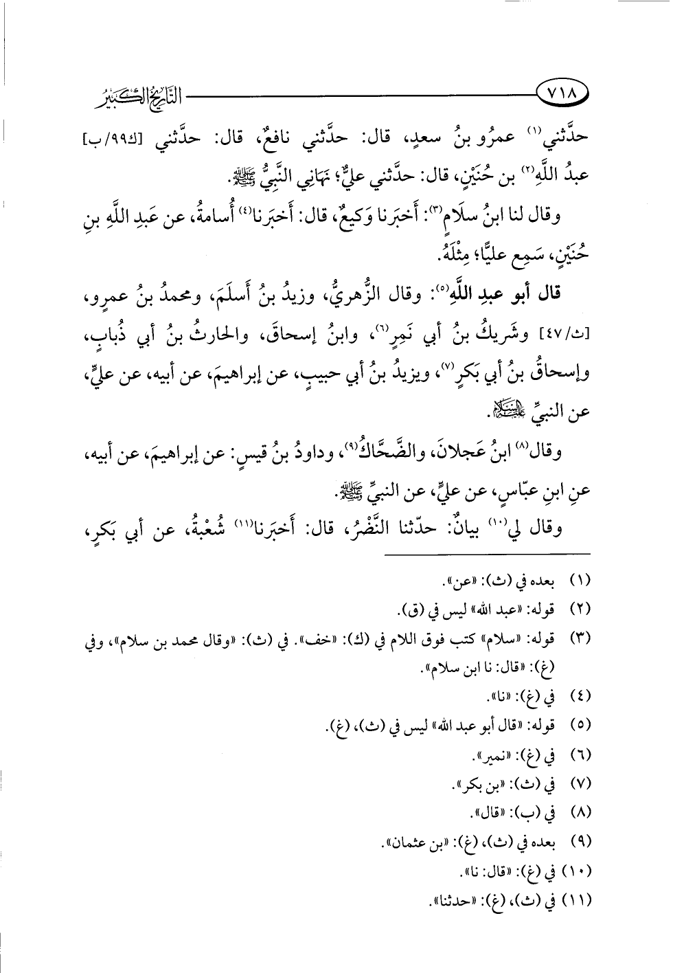 وقال لنا ابنُ سلَامٍ (¬٣): أَخبَرنا وَكيعٌ، قال: أَخبَرنا (¬٤) أُسامةُ، عن عَبدِ اللَّهِ بنِ حُنَيْنٍ، سَمِع عليًّا؛ مِثْلَهُ.