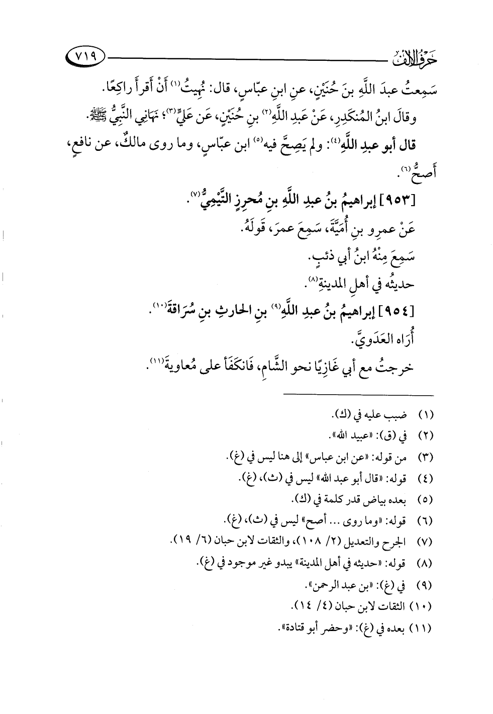 [٩٥٤] إبراهيمُ بنُ عبدِ اللَّهِ (¬٩) بنِ الحارثِ بنِ سُرَاقةَ (¬١٠).