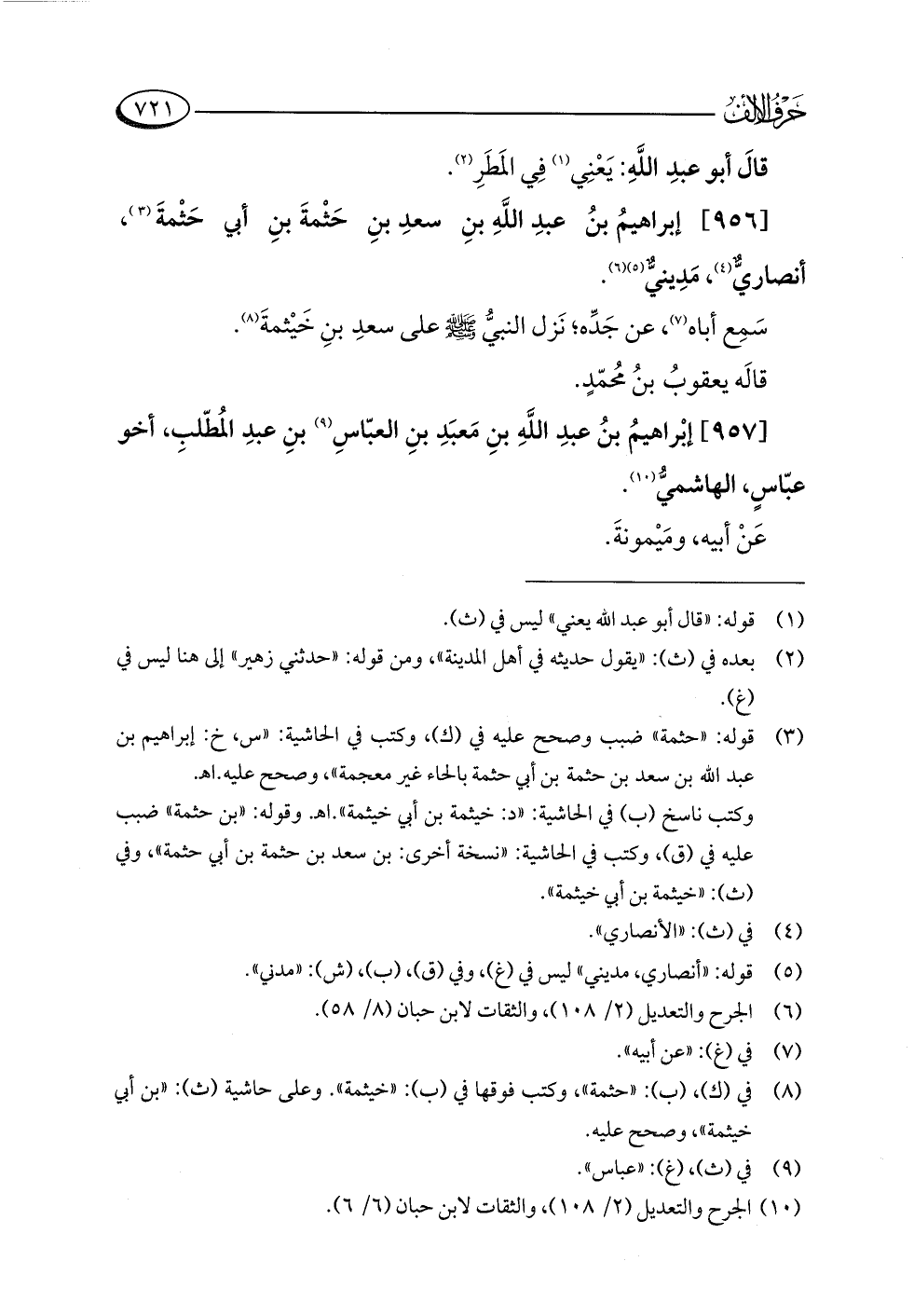 [٩٥٦] إبراهيمُ بنُ عبدِ اللَّهِ بنِ سعدِ بنِ حَثْمةَ بنِ أبي حَثْمةَ (¬٣)، أنصاريٌّ (¬٤)، مَدِينيٌّ (¬٥) (¬٦).