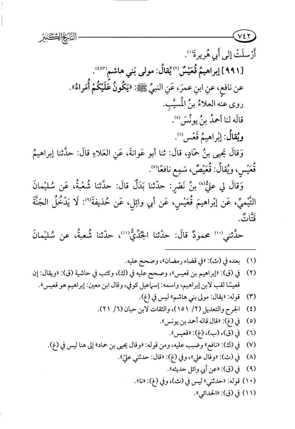 (¬٢) في (ق): "إبراهيم بن قعيس"، وصحح عليه في (ك)، وكتب في حاشية (ق): "ويقال: إن قعيسًا لقب لابن إبراهيم، واسمه: إسماعيل كوفي، وقال ابن معين: إبراهيم هو قعيس".