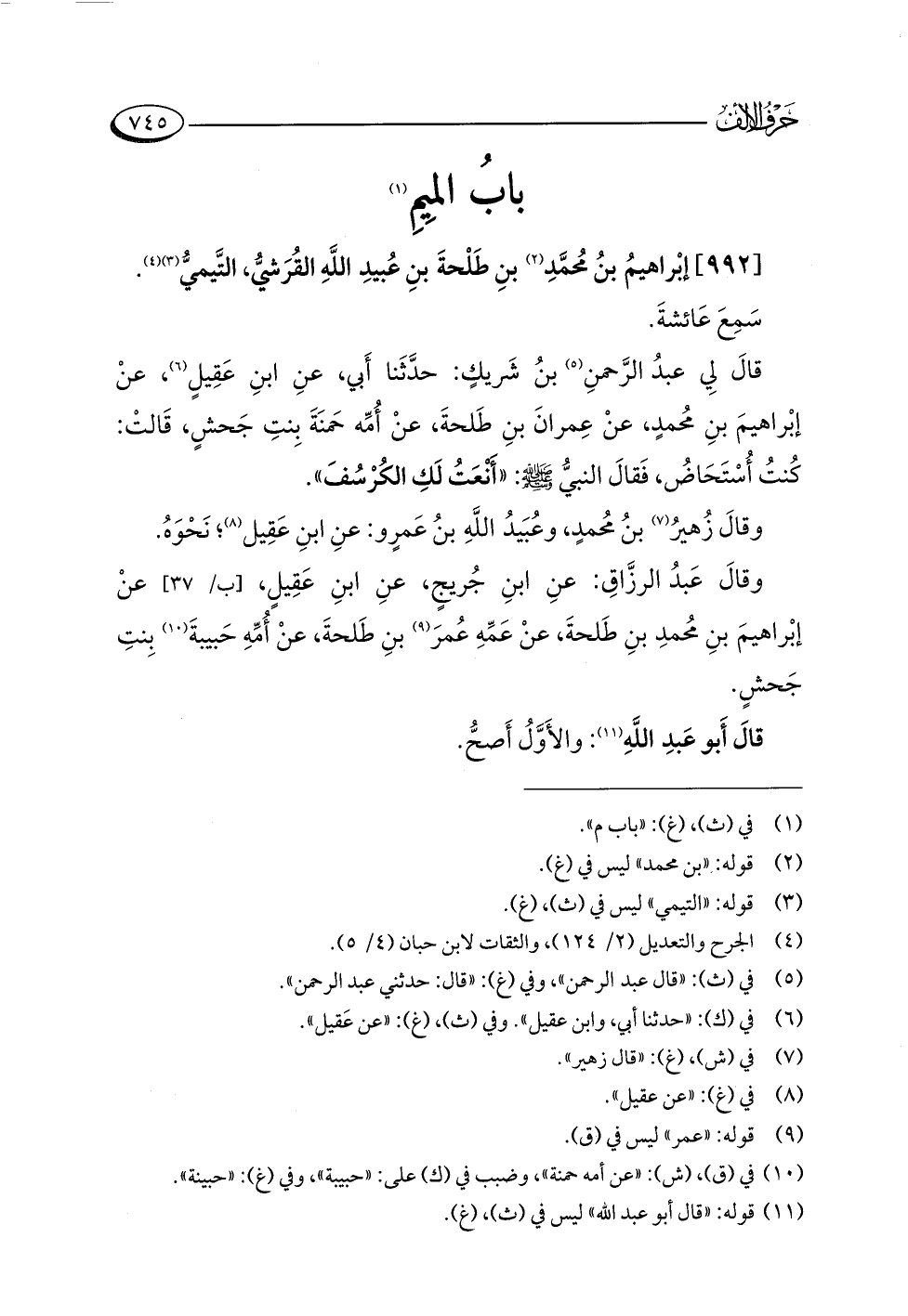 قالَ أَبو عَبدِ اللَّهِ (¬١١): والأَوَّلُ أَصحُّ.