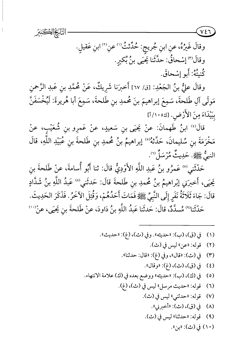 قالَ (¬٤) ابنُ طَهمانَ: عنْ يَحيَى بنِ سَعيدٍ، عنْ عَمرِو بنِ شُعَيْب، عنْ مَخْرَمَةَ بنِ سُليمانَ، حَدَّثهُ (¬٥) إبراهيمُ بنُ مُحمدِ بنِ طَلحةَ بنِ عُبَيْدِ اللَّهِ، قالَ النبيُّ -صلى اللَّه عليه وسلم-. حَدِيثٌ مُرْسَلٌ (¬٦).