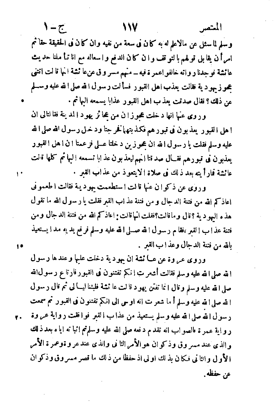 وسلم لما سئل عن ما لا علم له به كان في سعة من نفيه وإن كان في الحقيقة حقا ثم أمر أن يقابل قولهم بالتوقف وإن كان الدفع واسعاله مع أنا تأملنا حديث عائشة فوجدنا رواته خالفوا عمرة فيه منهم مسروق عن عائشة أنها قالت أتتني عجوز يهودية فقالت يعذب أهل القبور فسألت رسول الله صلى الله عليه وسلم عن ذلك فقال: "صدقت يعذب أهل القبور عذابا يسمعه البهائم" وروى عنها أنها دخلت عجوزان من عجائز يهود المدينة فقالتا لي: إن أهل القبور يعذبون في قبورهم فكذبتهما فخرجتا ودخل رسول الله صلى الله عليه وسلم فقلت: يا رسول الله إن عجوزين دخلتا علي فزعمتا أن أهل القبور يعذبون في قبورهم؟ فقال: "صدقتا إنهم ليعذبون عذابا تسمعه البهائم كلها" قالت عائشة: فما رأيته بعد ذلك في صلاة إلا يتعوذ من عذاب القبر وروى عن ذكوان عنها, قالت: استطعمت يهودية فقالت: اطعموني أعاذكم الله من فتنة الدجال ومن فتنة عذاب القبر, فقلت: يا رسول الله ما تقول هذه اليهودية؟ قال: "وما قالت؟ " فقلت: إنها قالت: أعاذكم الله من فتنة الدجال ومن فتنة عذاب القبر, فقام رسول الله صلى الله عليه وسلم فرفع يديه مدا يستعيذ بالله من فتنة الدجال وعذاب القبر وروى عروة عن عائشة أن يهودية دخلت عليها وعندها رسول الله صلى الله عليه وسلم فقالت: أشعرت أنكم تفتنون في القبور فارتاع رسول الله صلى الله عليه وسلم وقال: "إنما تفتن يهود" قالت عائشة: فلبثنا ليالي ثم قال رسول الله صلى الله عليه وسلم: "أما شعرت أنه أوحي إلي أنكم تفتنون في القبور؟ ", ثم سمعت رسول الله صلى الله عليه وسلم يستعيذ من عذاب القبر فوافقت رواية عروة رواية عمرة فالصواب أنه تقدم دفعه صلى الله عليه وسلم ثم اثباته إياه بعد ذلك والذي عند مسروق وذكوان هو الأمر الثاني والذي عند عروة وعمرة الأمر الأول والثاني فكان بذلك أولى إذ حفظا من ذلك ما قصر مسروق وذكوان عن حفظه.