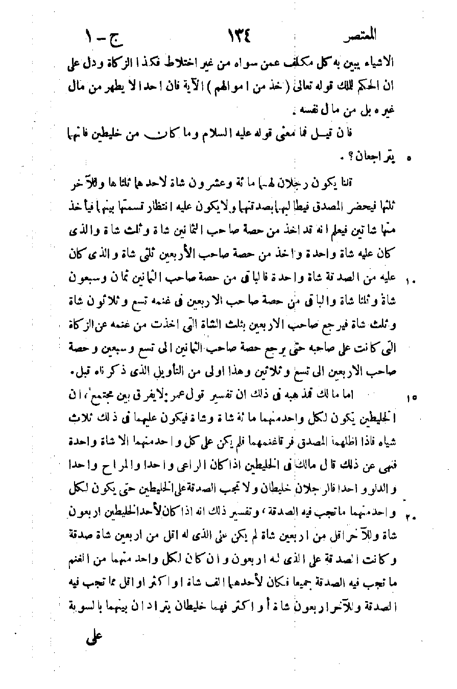 قلنا: يكون رجلان لهما مائة وعشرون شاة لأحدهما ثلثاها وللآخر ثلثها فيحضر المصدق فيطالبهما بصدقتهما ولا يكون عليه انتظار قسمتها بينهما فيأخذ منها شاتين فيعلم أنه قد أخذ من حصة صاحب الثمانين شاة وثلث شاة والذي كان عليه شاة واحدة وأخذ من حصة صاحب الأربعين ثلثي شاة والذي كان عليه من الصدقة شاة واحدة فالباقي من حصة صاحب الثمانين ثمان وسبعون شاة وثلثا شاة والباقي من حصة صاحب الأربعين في غنمه تسع وثلاثون شاة وثلث شاة فيرجع صاحب الأربعين بثلث الشاة التي أخذت من غنمه عن الزكاة التي كانت على صاحبه حتى يرجع حصة صاحب الثمانين إلى تسع وسبعين وحصة صاحب الأربعين إلى تسع وثلاثين وهذا أولى من التأويل الذي ذكرناه قبل.
