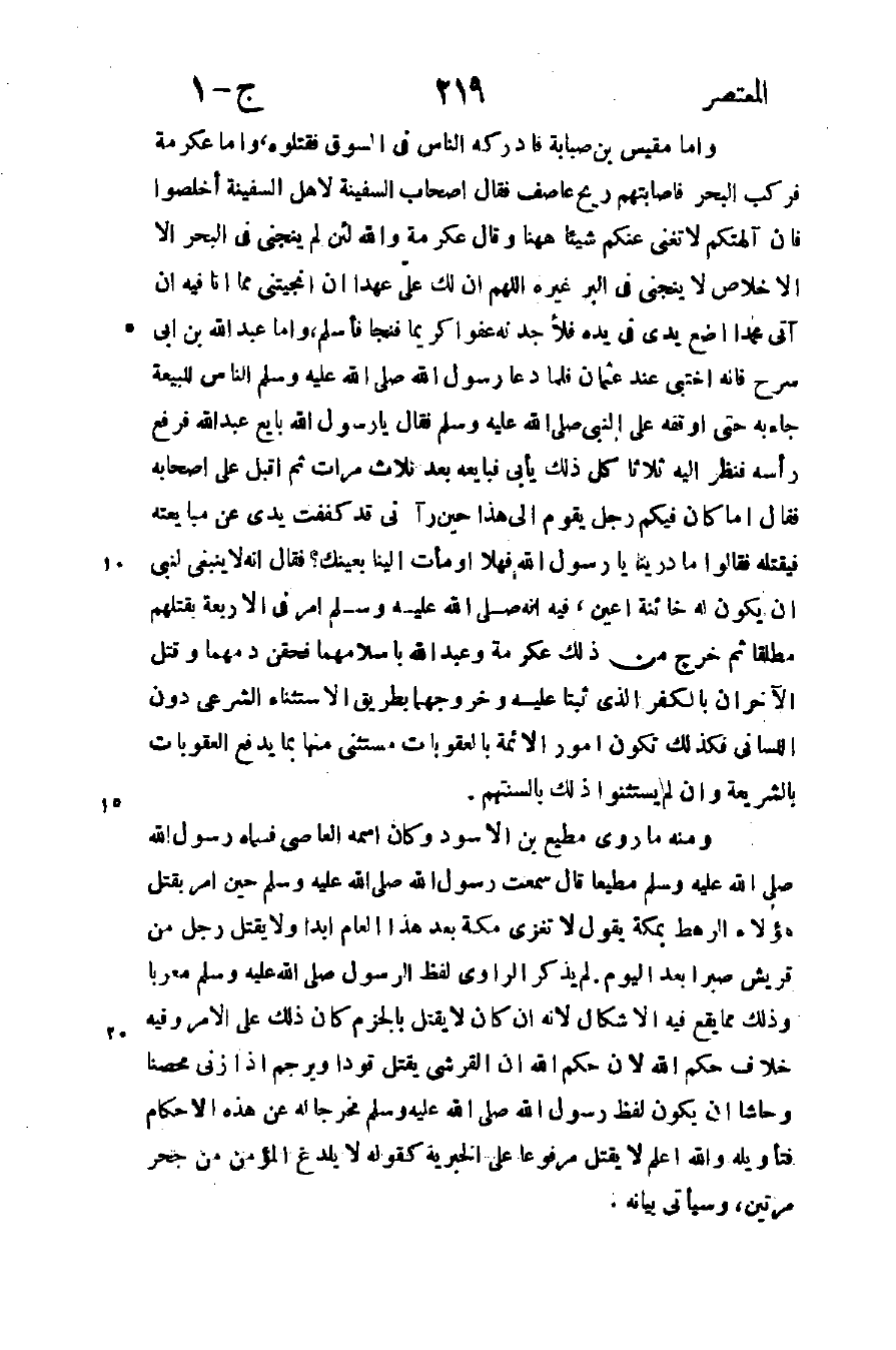 وأما مقيس بن صبابة فأدركه الناس في السوق فقتلوه وأما عكرمة فركب البحر فأصابتهم ريح عاصف فقال أصحاب السفينة لأهل السفينة أخلصوا فإن آلهتكم لا تغنى عنكم شيئا ههنا وقال عكرمة والله لئن لم ينجني في البحر إلا الإخلاص لا ينجني في البر غيره اللهم أن لك علي عهدا أن أنجيتني مما أنا فيه أن آتي محمدا اضع يدي في يده فلأجد له عفوا كريما فنجا فأسلم وأما عبد الله بن أبي سرح فإنه اختبى عند عثمان فلما دعا رسول الله صلى الله عليه وسلم الناس للبيعة جاء به حتى أوقفه على النبي صلى الله عليه وسلم فقال يا رسول الله بايع عبد الله فرفع رأسه فنظر إليه ثلاثا كل ذلك يأبى فبايعه بعد ثلاث مرات ثم أقبل على أصحابه فقال: "أما كان فيكم رجل يقوم إلى هذا حين رآني قد كففت يدي عن مبايعته فيقتله" فقالوا: ما درينا يا رسول الله فهلا أومأت إلينا بعينك؟ فقال: "إنه لا ينبغي لنبي أن يكون له خائنة أعين" فيه أنه صلى الله عليه وسلم أمر في الأربعة بقتلهم مطلقا ثم خرج من ذلك عكرمة وعبد الله بإسلامهما فحقن دمهما وقتل الآخران بالكفر الذي ثبتا عليه وخروجهما بطريق الاستثناء الشرعي دون اللساني فكذلك تكون أمور الأئمة بالعقوبات مستثنى منها بما يدفع العقوبات بالشريعة وإن لم يستثنوا ذلك بألسنتهم.
