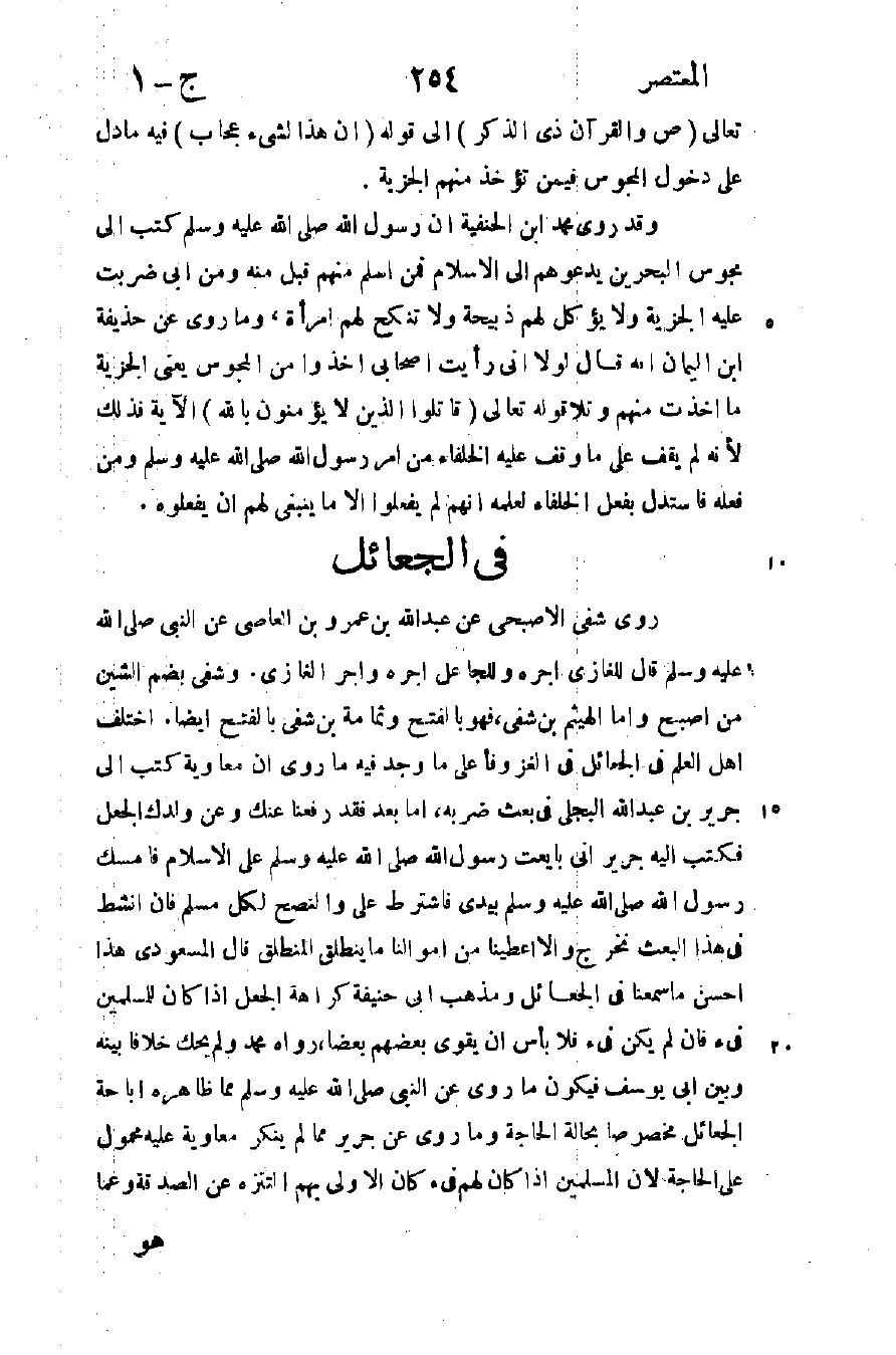 ورى شفى الأصبحي عن عبد الله بن عمرو بن العاصي عن النبي صلى الله عليه وسلم قال: "للغازي أجره وللجاعل أجره" وأجر الغازي وشفى بضم الشين من أصبح وأما الهيثم بن شفى فهو بالفتح وثمامة بن شفى بالفتح أيضا اختلف أهل العلم في الجعائل في الغزو فأعلى ما وجد فيه ما روى أن معاوية كتب إلى جرير بن عبد الله البجلي في بعث ضربه أما بعد فقد رفعنا عنك وعن ولدك الجعل فكتب إليه جرير إني بايعت رسول الله صلى الله عليه وسلم على الإسلام فأمسك رسول الله صلى الله عليه وسلم بيدي فاشترط على والنصح لكل مسلم فإن انشط في هذا البعث نخرج وغلا أعطينا من أموالنا ما ينطلق المنطلق قال المسعودي: هذا أحسن ما سمعنا في الجعائل ومذهب أبي حنيفة كراهة الجعل إذا كان للمسلمين فئ فإن لم يكن فئ فلا بأس أن يقوى بعضهم بعضا رواه محمد ولم يحك خلافا بينه وبين أبي يوسف فيكون ما روى عن النبي صلى الله عليه وسلم مما ظاهره أباحة الجعائل مخصوصا بحالة الحاجة وما روى عن جرير مما لم ينكر معاوية عليه محمول على الحاجة لأن المسلمين إذا كان لهم فئ كان الأولى بهم التنزه عن الصدقة وعما