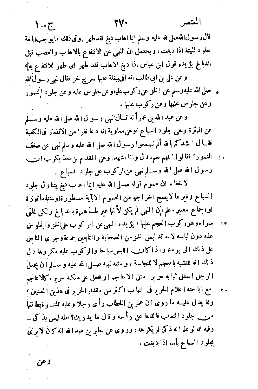لا خفاء أن عموم قوله صلى الله عليه "أيما إهاب دبغ" يتناول جلود السباع وغيرها لا يصح إخراجها منالعموم إلا بآية مسطورة أو سنة مأثورة أو إجماع معتبر علم إن النهي لم يكن لأنها غير طاهرة بالدباغ ولكن لمعنى سواه وهو ركوب العجم عليها يؤيده النهي عن الركوب على الخز والجلوس عليه دون لباسه لأنه قد لبس الخز من الصحابة والتابعين جماعة وجرى النسا على ذلك إلى يومنا وإذا كان اللبس مباحا والركوب عليه مكروها دل ذلك أنه للتشبه بالعجم لا للنجاسة ومثله نهيه صلى الله عليه وسلم أن يجعل الرجل أسفل ثيابه حريرا مثل الأعاجم أو يجعل على منكبه حريرا كالأعاجم مع إباحته أعلام الحرير في الثياب أكثر من مقدار الحرير في هذين المعنيين ومما يدل عليه ما روى أن عمر بن الخطاب رأى رجلا وعليه قلنسوة بطانتها من جلود الثعالب فألقاها عن رأسه وقال: ما يدريك لعله ليس بذكي وفيه أنه لو علم أنه ذكي لم يكرهه وروى عن جابر بن عبد الله أنه كان لا يرى بجلود السباع بأسا إذا دبغت.