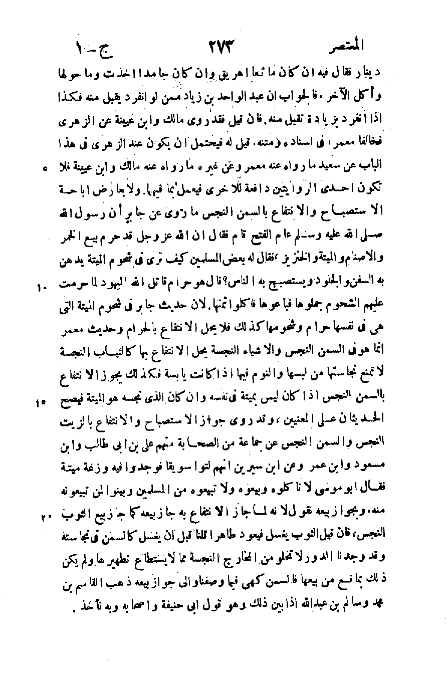 دينار فقال فيه إن كان مائعا اهريق وإن كان جامدا أخذت وما حولها وأكل الآخر فالجواب أن عبد الواحد بن زياد ممن لو انفرد يقبل منه فكذا إذا انفرد بزيادة تقبل منه فإن قيل فقد روى مالك وابن عيينة عن الزهري فخالفا معمرا في إسناده ومتنه قيل له فيحتمل أن يكون عند الزهري في هذا الباب عن سعيد ما رواه عنه معمر وعن غيره ما رواه عنه مالك وابن عيينة فلا تكون إحدى الروايتين دافعة للأخرى فيعمل بما فيهما ولا يعارض إباحة الاستصباح والانتفاع بالسمن النجس ما روي عن جابر أن رسول الله صلى الله عليه وسلم عام الفتح قام فقال: "إن الله عز وجل قد حرم بيع الخمر والأصنام والميتة والخنزير" فقال له بعض المسلمين: كيف ترى في شحوم الميتة يدهن به السفن والجلود ويستصبح به الناس؟ قال: "هو حارم قاتل الله اليهود لما حرمت عليهم الشحوم جملوها فباعوها فأكلوا ثمنها" لان حديث جابر في شحوم الميتة التي هي في نفسها حرام وشحومها كذلك فلا يحل الانتفاع بالحرام وحدث معمر إنما هو في السمن النجس والأشياء النجسة يحل الانتفاع بها كالثياب النجسة لا تمنع نجاستها من لبسها والنوم فيها إذا كانت يابسة فكذلك يجوز الانتفاع بالسمن النجس إذا كان ليس بميتة في نفسه وإن كان الذي نجسه هو الميتة فيصح الحديثان على المعنيين وقد روى جواز الاستصباح والانتفاع بالمويت النجس والسمن النجس عن جماعة من الصحابة منهم عليه بن أبي طالب وابن مسعود وابن عمر وعن ابن سيرين أنهم لتوا سويقا فوجدوا فيه زوغة ميتة فقال أبو موسى لا تأكلوه وبيعوه ولا تبيعوه من المسلمين وبينوا لمن تبيعونه منه وبجواز بيعه نقول لا هـ لما جاز الانتفاع به جاز بيعه كما جاز بيع الثوب النجس فإن قيل الثوب يغسل فيعود طاهرا قلنا قبل أن يغسل كالسمن في نجاسته وقد وجدنا الدور لا تخلو من المخارج النجسة مما لا يستطاع تطهيرها ولم يكن ذلك بمانع من بيعها فالسمن كهي فيما وصفنا وإلى جواز بيعه ذهب القاسم بن محمد وسالم بن عبد الله إذا بين ذلك وهو قول أبي حنيفة وأصحابه وبه نأخذ