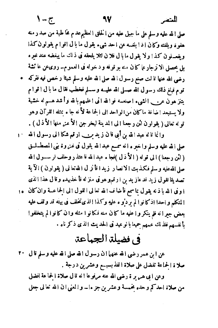 عن ابن عمر رضي الله عنهما أن رسول الله صلى الله عليه وسلم قال: "صلاة الجماعة تفضل على صلاة الفذ بسبع وعشرين درجة".