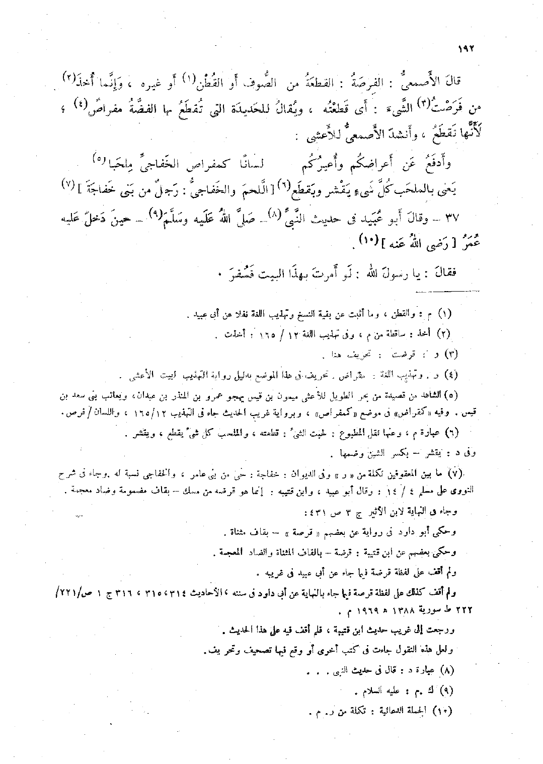 37 - وقال أبو عبيد فى حديث النَّبىِّ -صلَّى الله عليه وسلَّم- حين دخل عليه عمر [رضى الله عنه].
