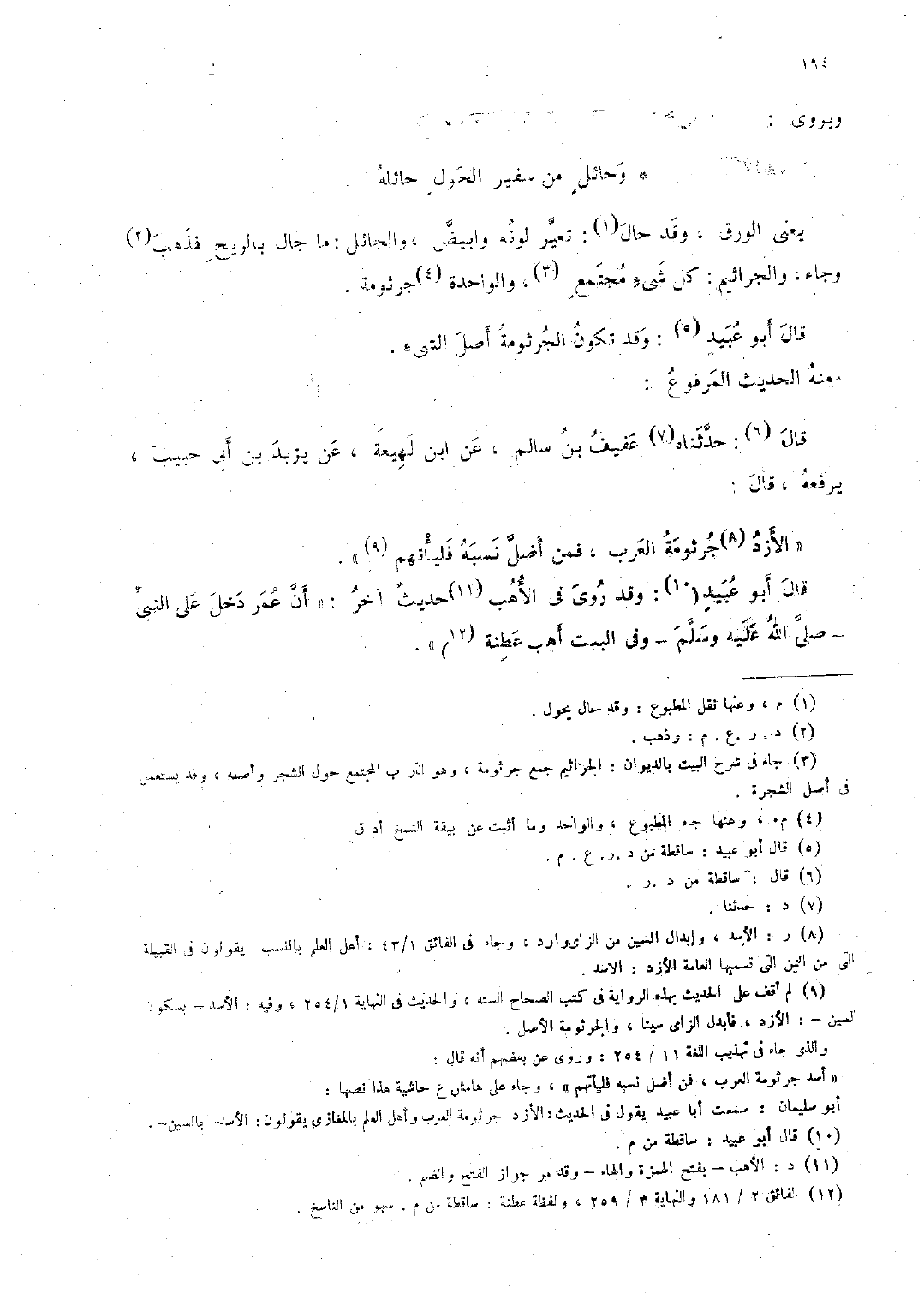 قال أبو عبيد (: وقد روى فى الأهب حديث آخر: "أنَّ عمر دخل على النَّبىِّ -صلَّى الله عليه وسلَّم- وفى البيت أهب عطنة) ".