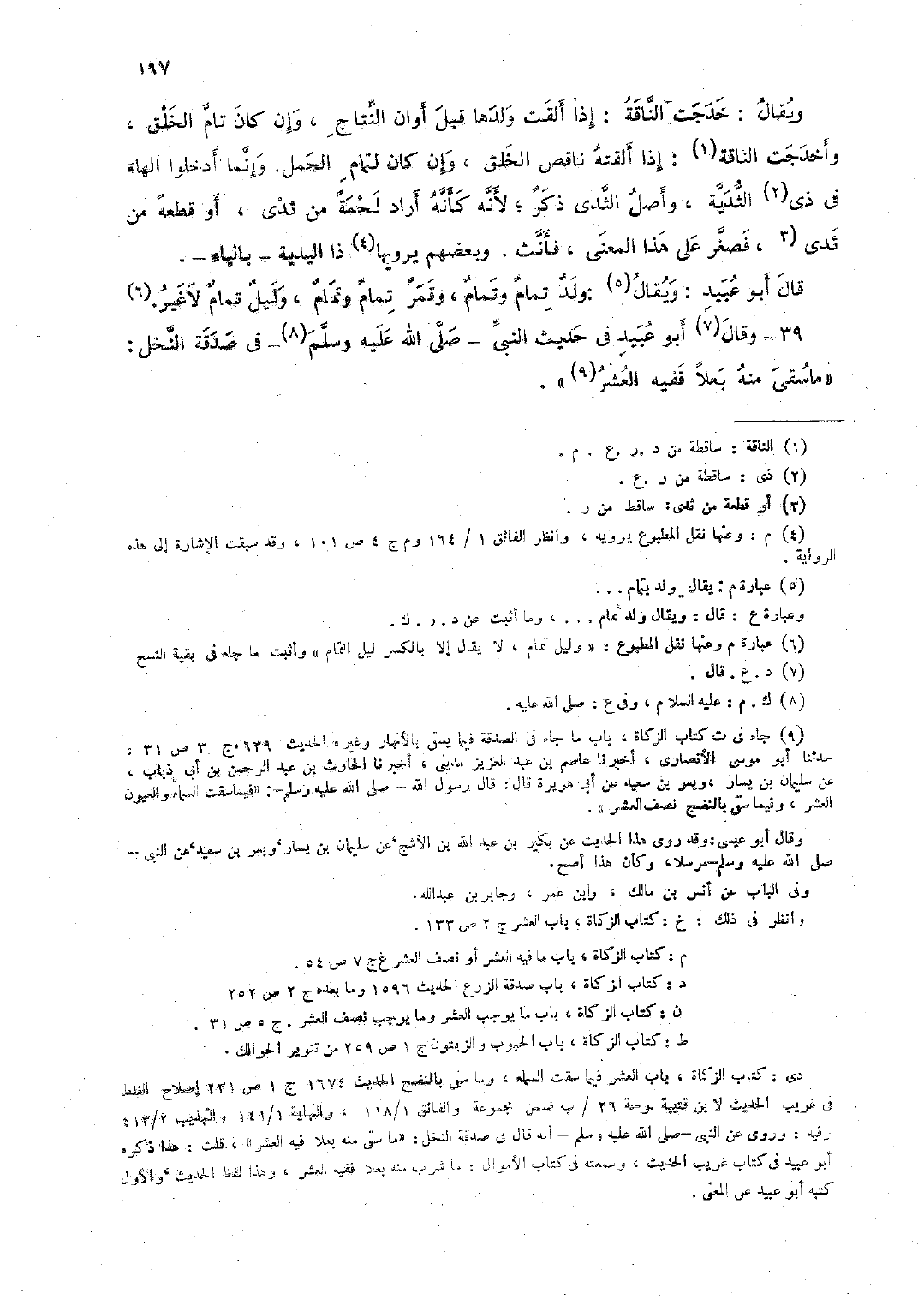 39 - وقال أبو عبيد فى حديث النَّبىِّ -صلَّى الله عليه وسلَّم- فى صدقة النخل: "ما سقى منه بعلاً قفيه العشر".