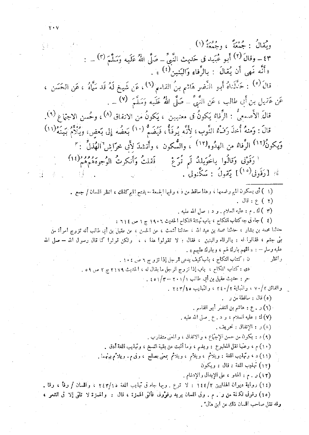 43 - وقال أبو عبيد فى حديث النَّبىِّ -صلَّى الله عليه وسلَّم-: