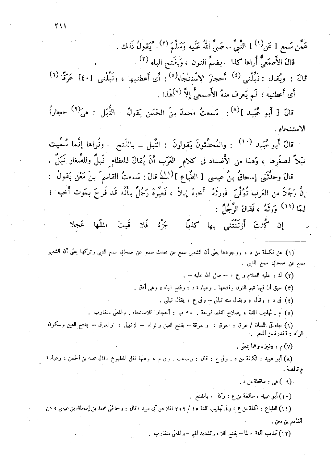 قال [أبو عبيد]: سمعت محمد بن الحسن يقول: النبل: هى حجارة الاستنجاء.