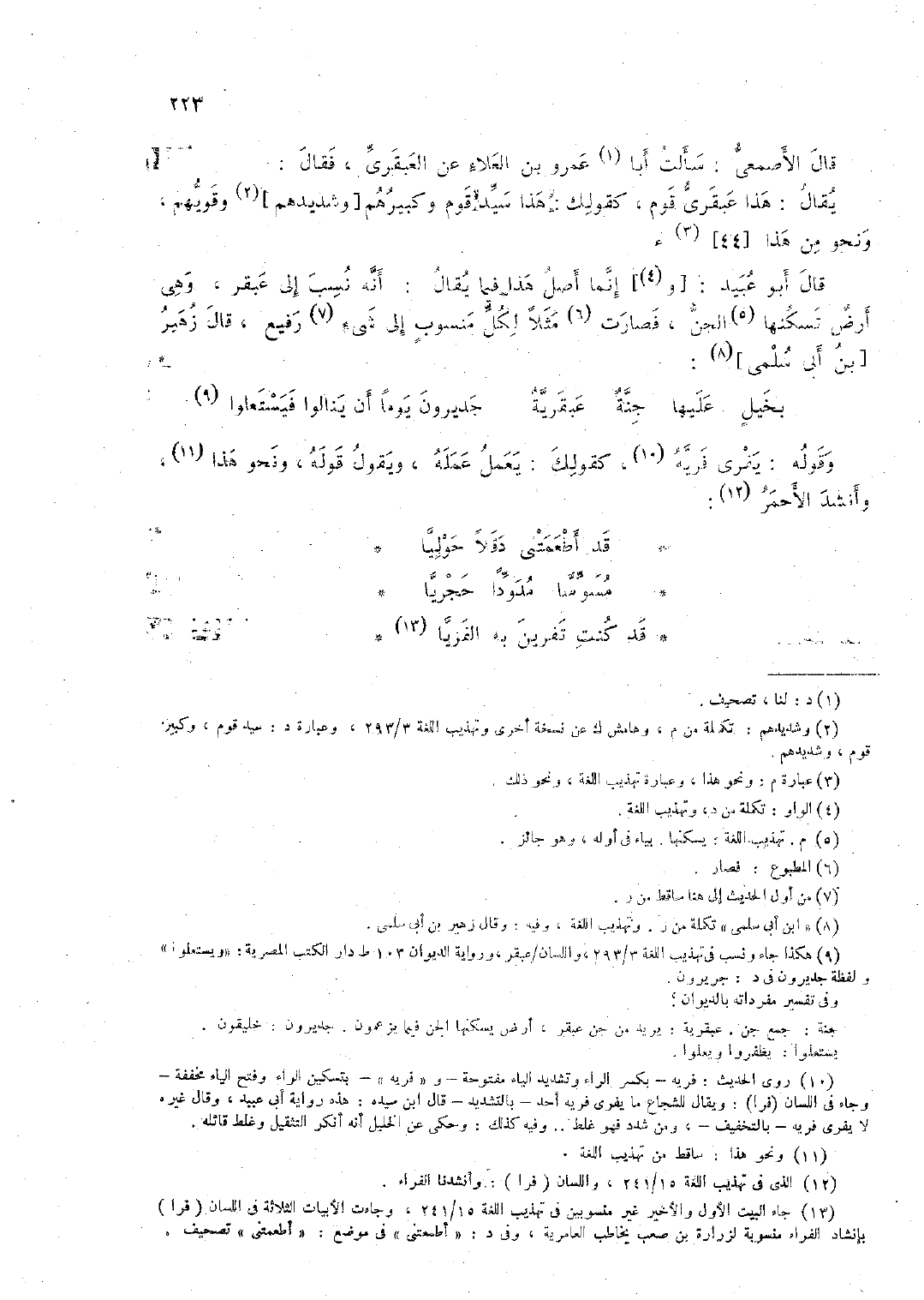قال الأصمعي: سألت أبا عمرو بن العلاء عن العبقري، فقال: