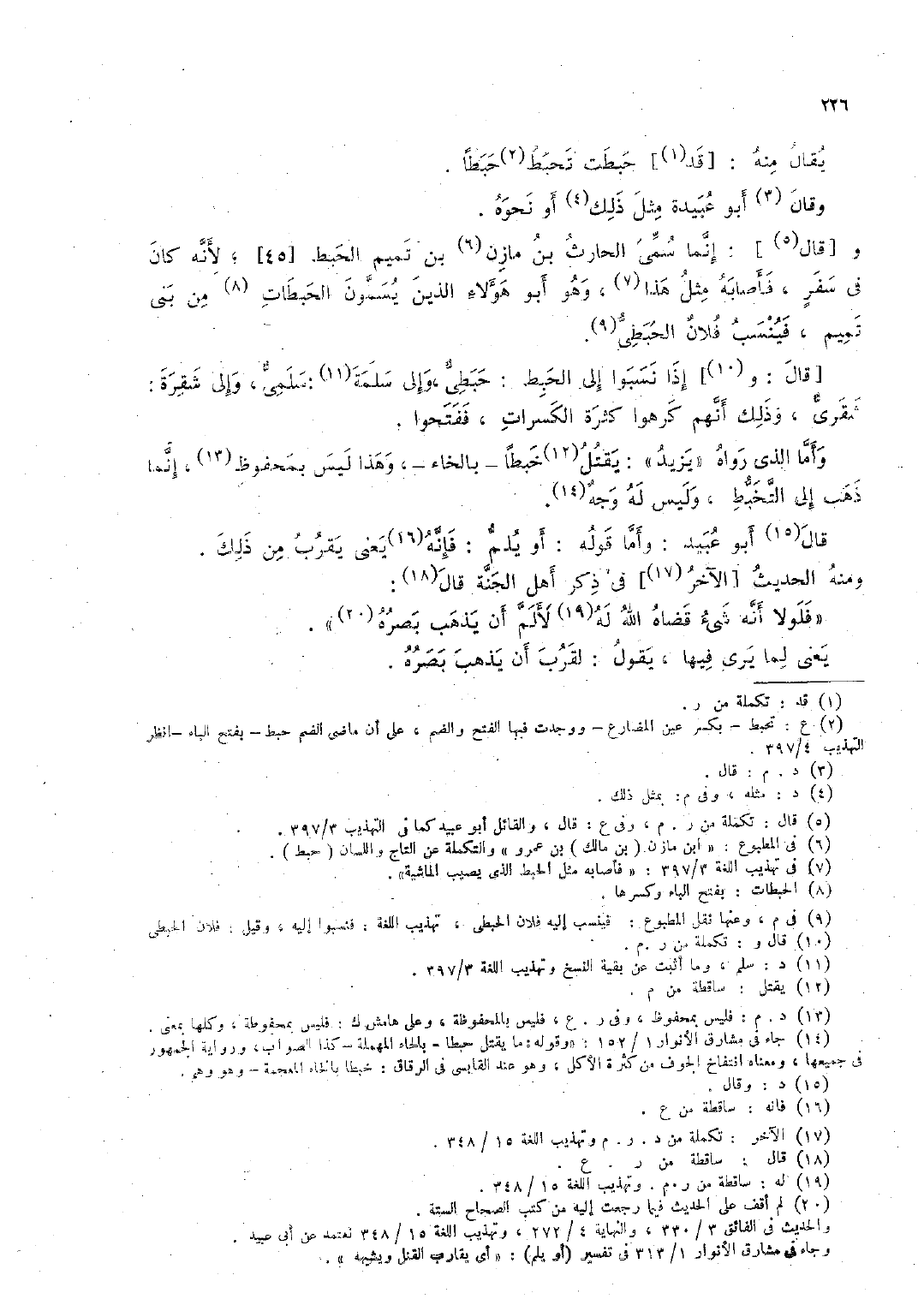 و[قال]: إنما سمى الحارث بن مازن بن تميم الحبط [45]، لأنه كان في سفر، فأصابه مثل هذا، وهو أبو هؤلاء الذين يسمون الحبطات من بنى تميم، فينسب فلان الحبطى.
