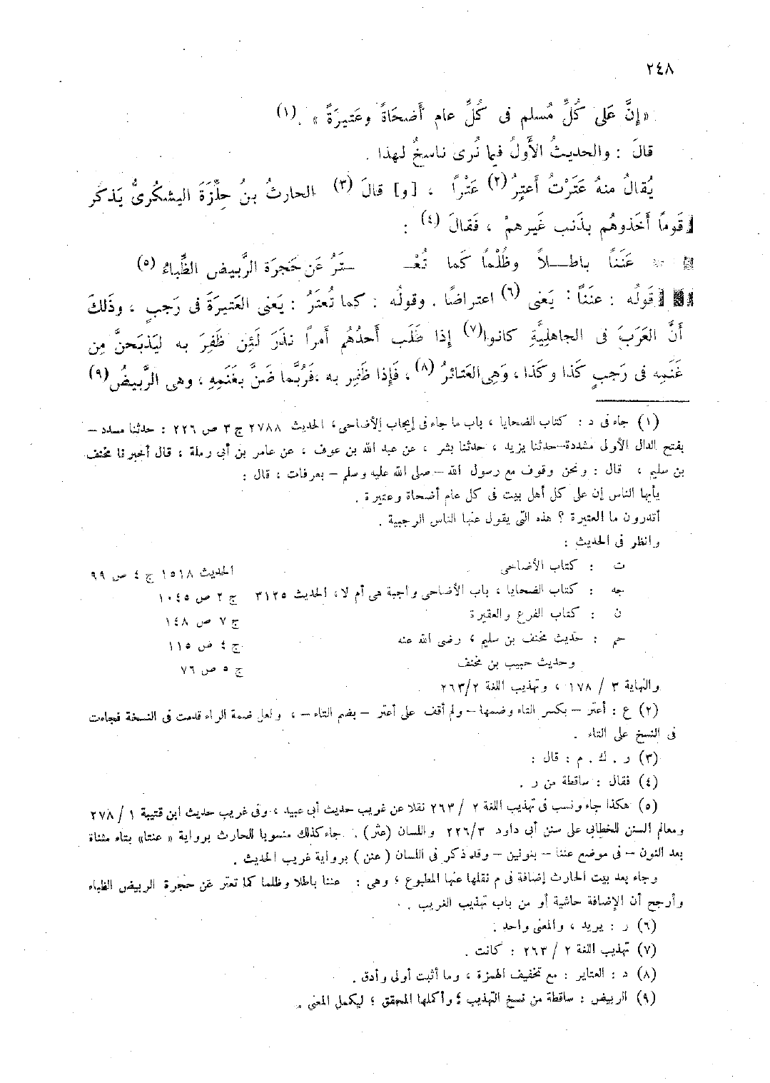 "إن على كل مسلم في كل عام أضحاة وعتيرة".