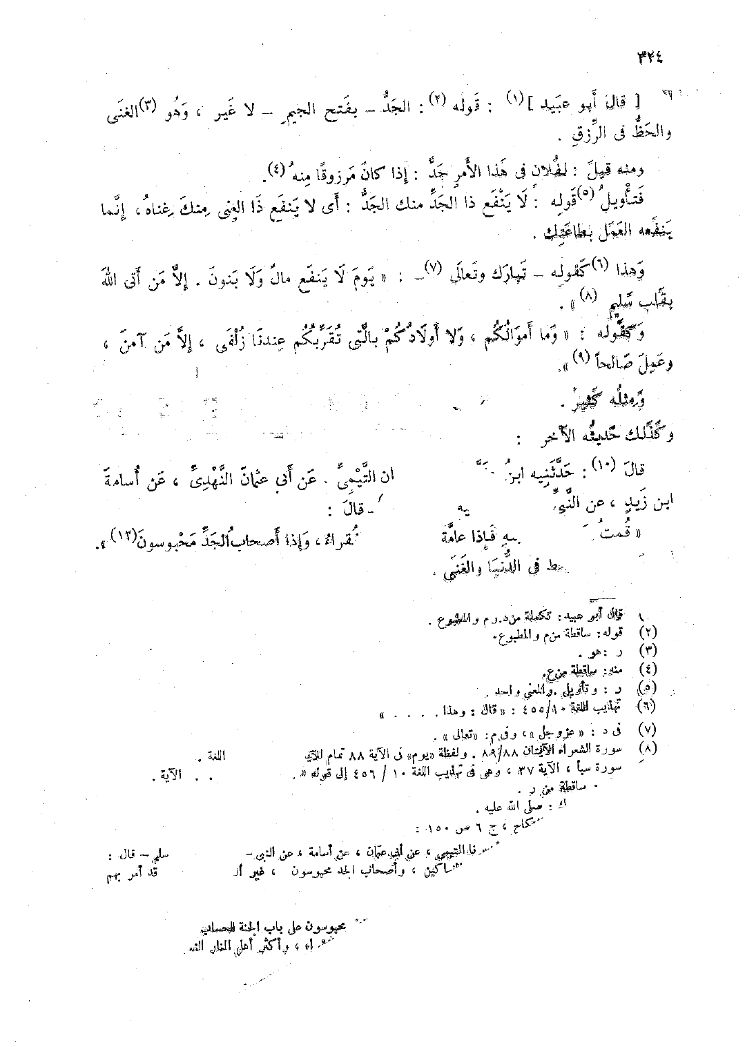 [قال أبو عبيد]: قوله: الجد -بفتح الجيم- لا غير، وهو الغنى والحظ في الرزق.