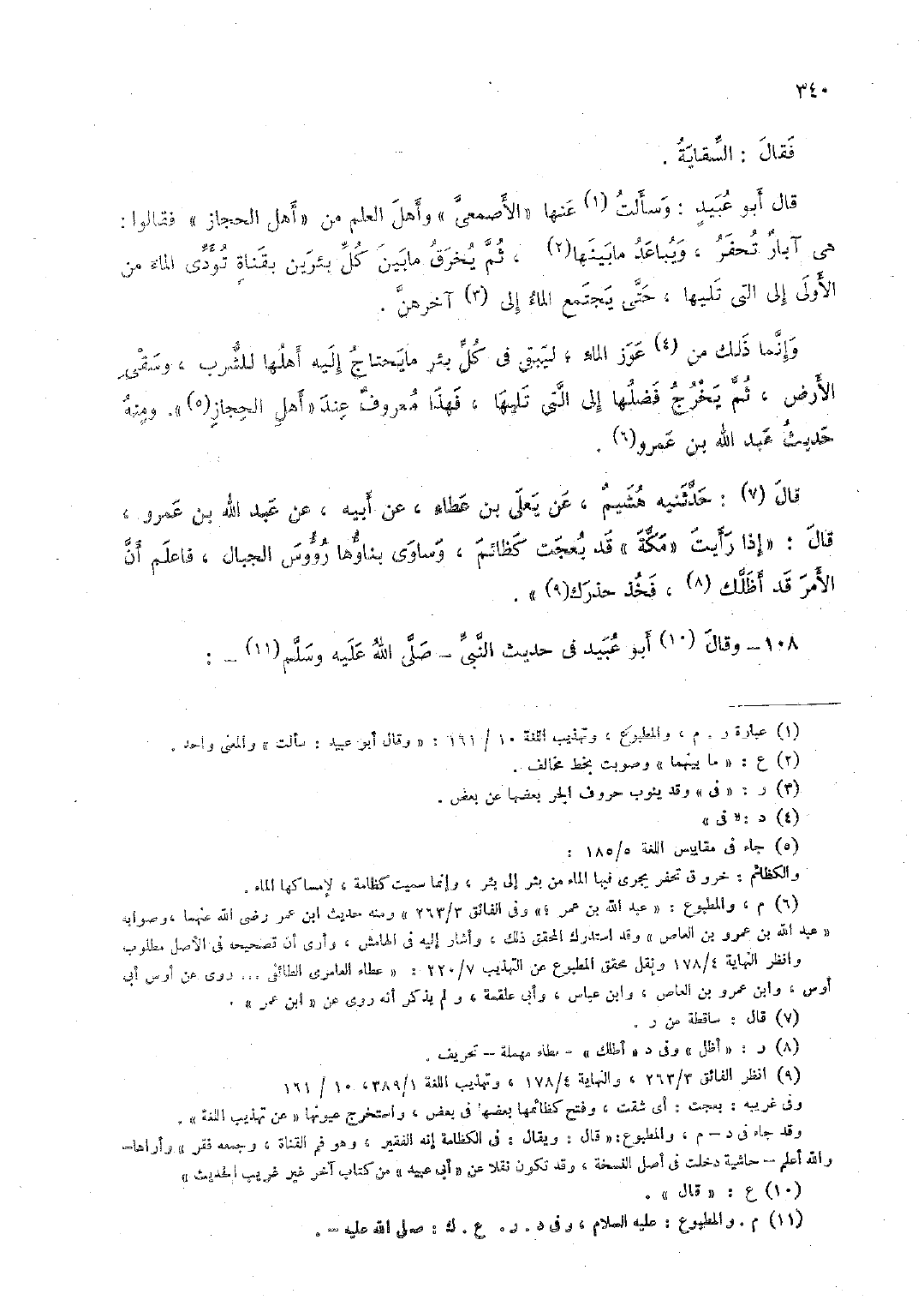 108 - وقال أبو عبيد في حديث النبي -صلى الله عليه وسلم-:
