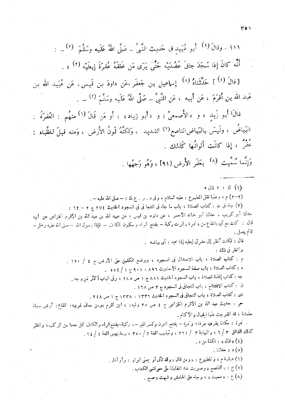 111 - وقال أبو عبيد في حديث النبيّ -صلى الله عليه وسلم-:
