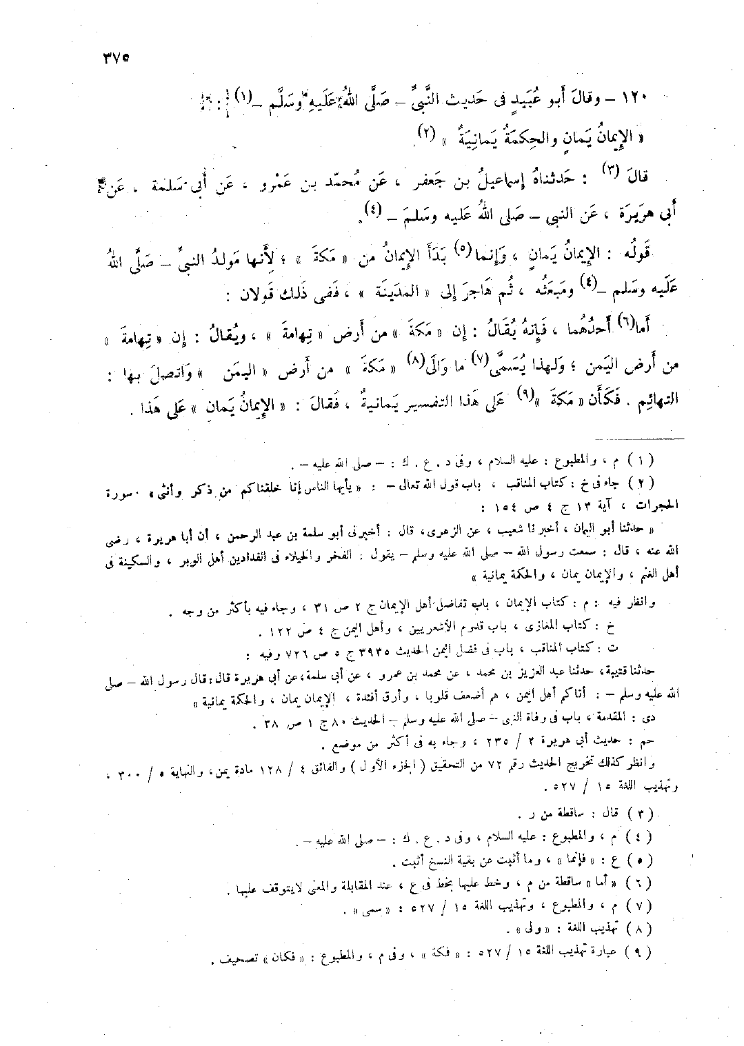 120 - وقال أبو عبيد في حديث النَّبيّ -صلى الله عليه وسلّم-: "الإيمان يمان والحكمة يمانية".