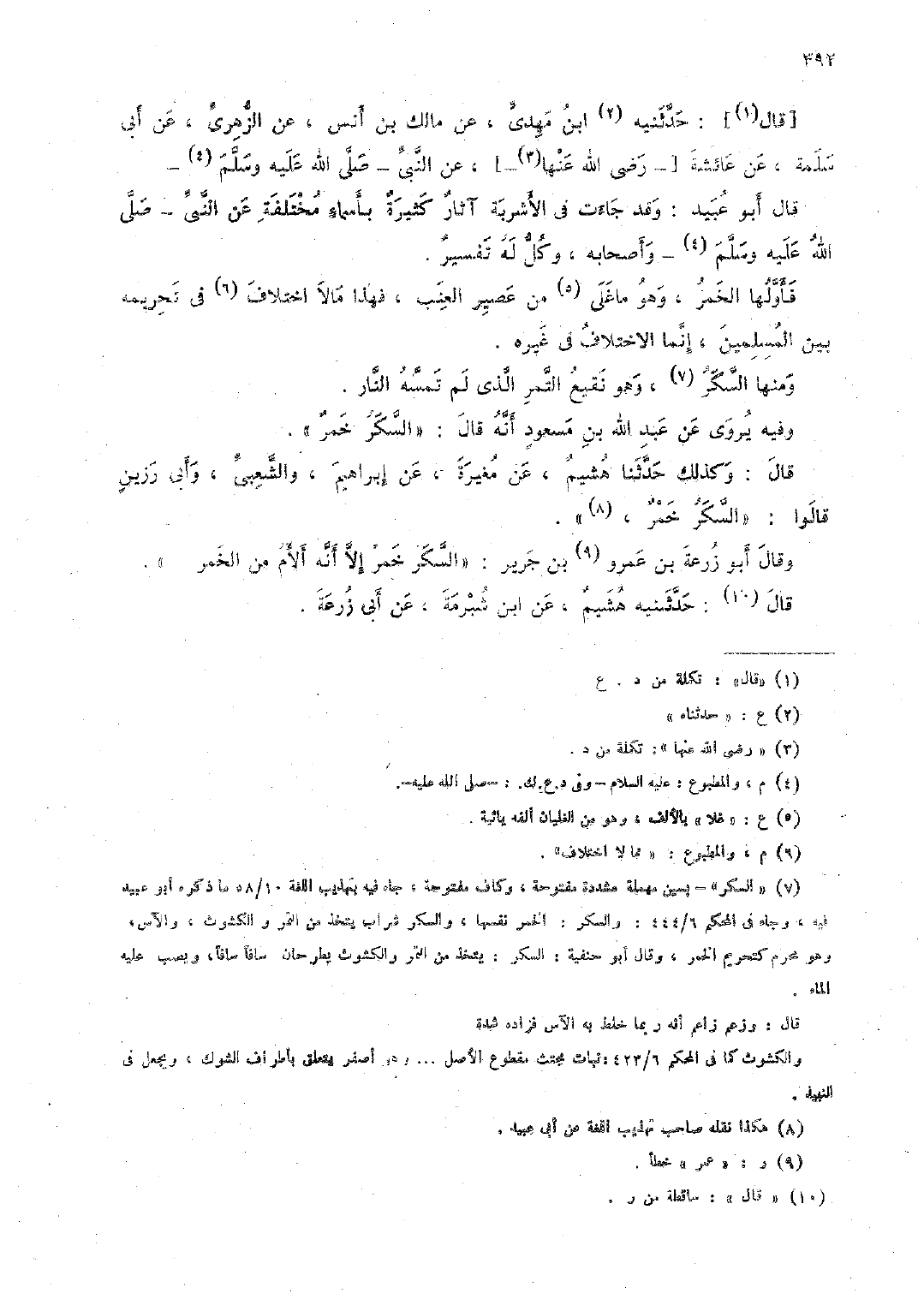 قال أبو عبيد: وقد جاءت في الأشربة آثار كثيرة بأسماء مختلفة عن النَّبيِّ -صلَّى الله عليه وسلَّم- وأصحابه، وكلُّ له تفسير.