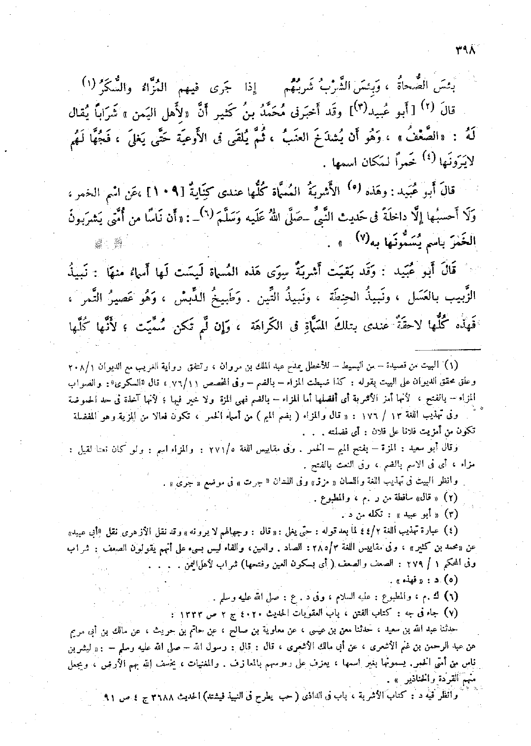قال أبو عبيد: وهذه الأشربة المسمَّاة كلُّها عندي كناية [109]، عن اسم الخمر، ولا أحسبها إلَّا داخلة في حديث النَّبيِّ -صلى الله عليه وسلم-: "أن ناسا من أمَّتي يشربون الخمر باسم يسمُّونها به".