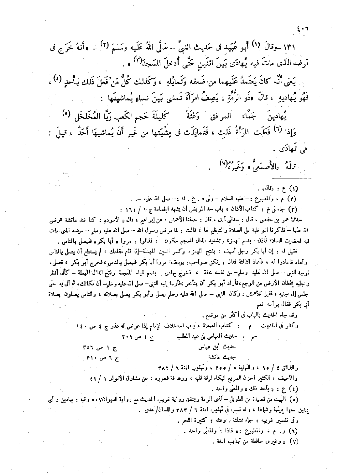 131 - وقال عبيد في حديث النَّبيِّ -صلَّى الله عليه وسلَّم- "أنه خرج في مرضه الذي مات فيه يهادي بين اثنين حتَّى أدخل المسجد".
