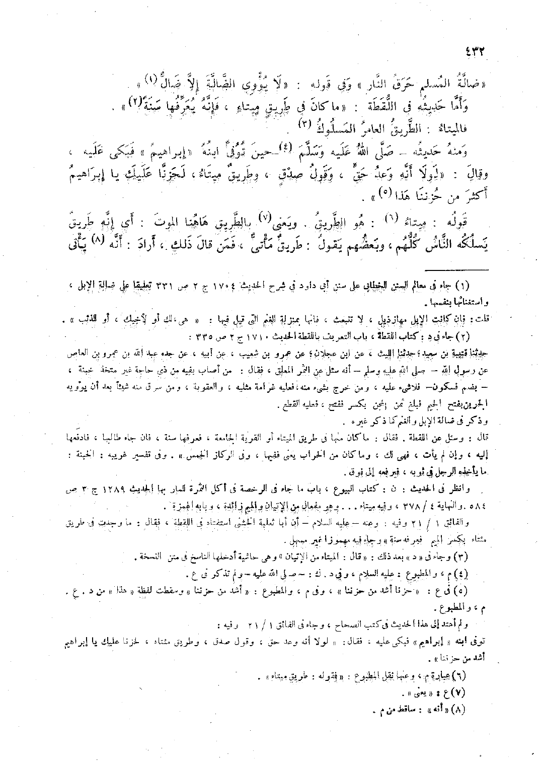 ومنه حديثه - صلَّى الله عليه وسلَّم - حين توفيِّ ابنه "إبراهيم" فبكى عليه، وقال: "لولا أنَّه وعد حقًّ، وقول صدق، وطريق ميتاء، لحزنَّا عليك يا إبراهيم أكثر من حزننا هذا".