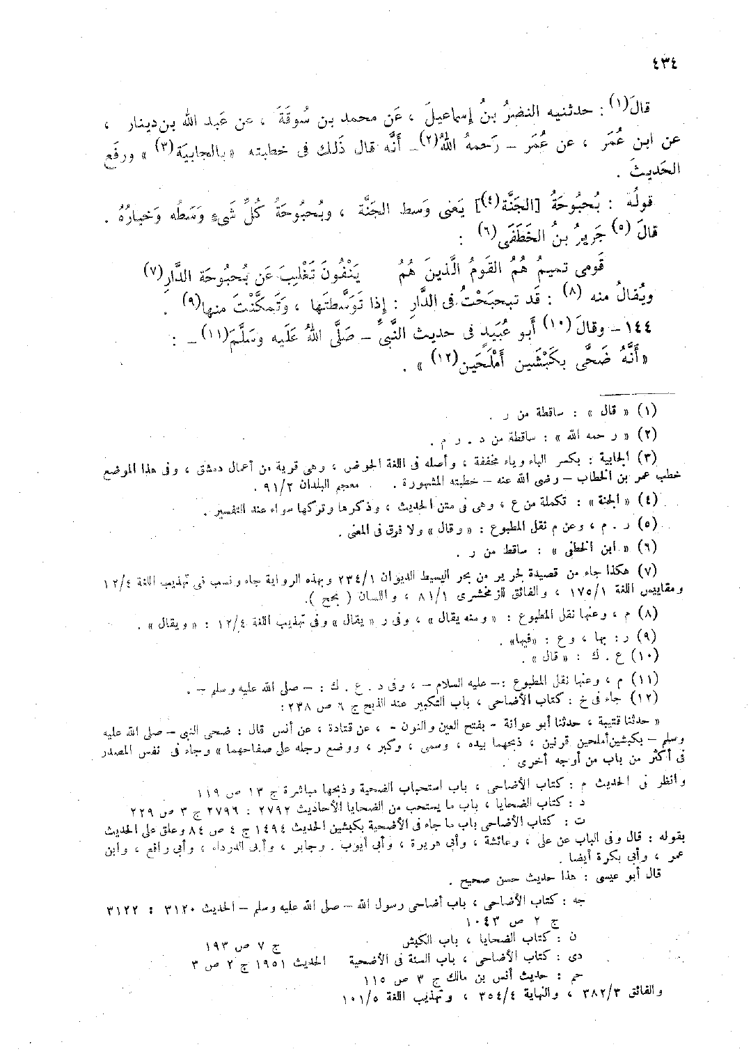 144 - وقال أبو عبيد في حديث النَّبيِّ -صلى الله عليه وسلم-: