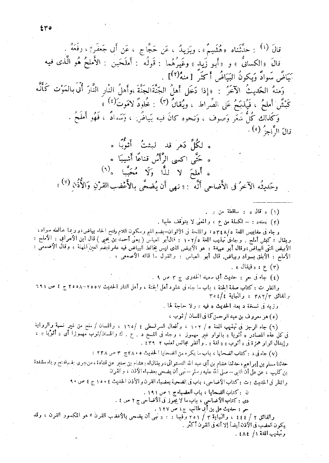 قال "الكسائيُّ" و "أبو زيد" وغيرهما: قوله: أملحين: الأملح هو الَّذي فيه بياض سواد ويكون البياض أكثر [منه].