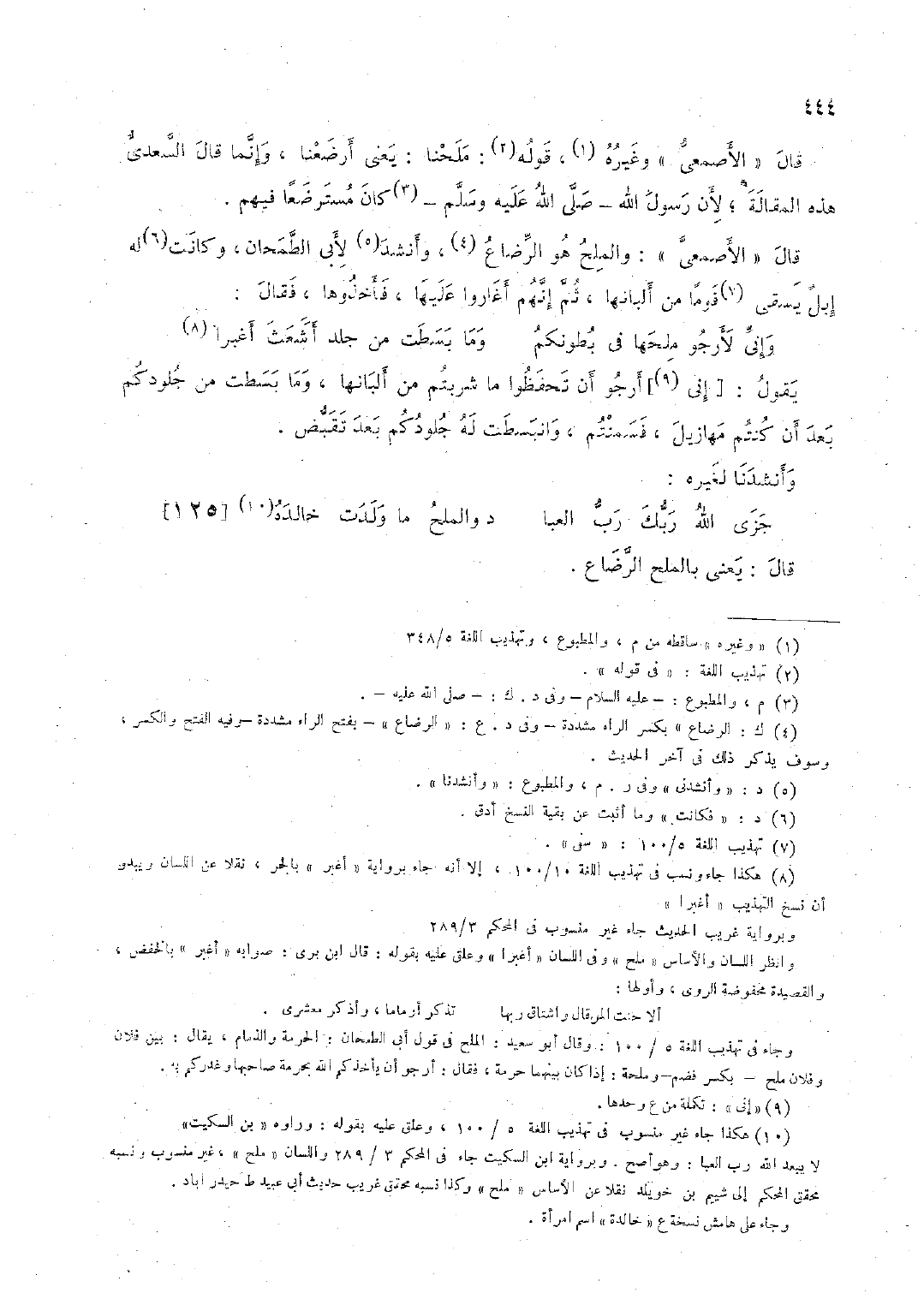 قال "الأصمعيَّ": والملح هو الرضاع، وأنشد لأبي الطَّمحان، وكانت له إبل يسقى قرمًا من ألبانها، ثمَّ إنَّهم أغاروا عليها، فأخذوها، فقال:
