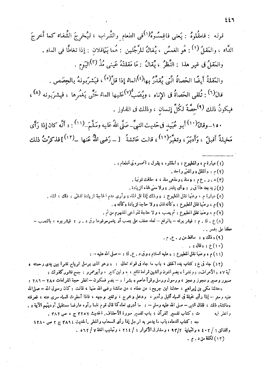قال: تلقى الحصاة في الإناء، ويصبُّ عليها الماء حتىَّ يغمرها، فيشربونه، فيكون ذلك حصَّة لكلِّ إنسان، وذلك في المفاوز.