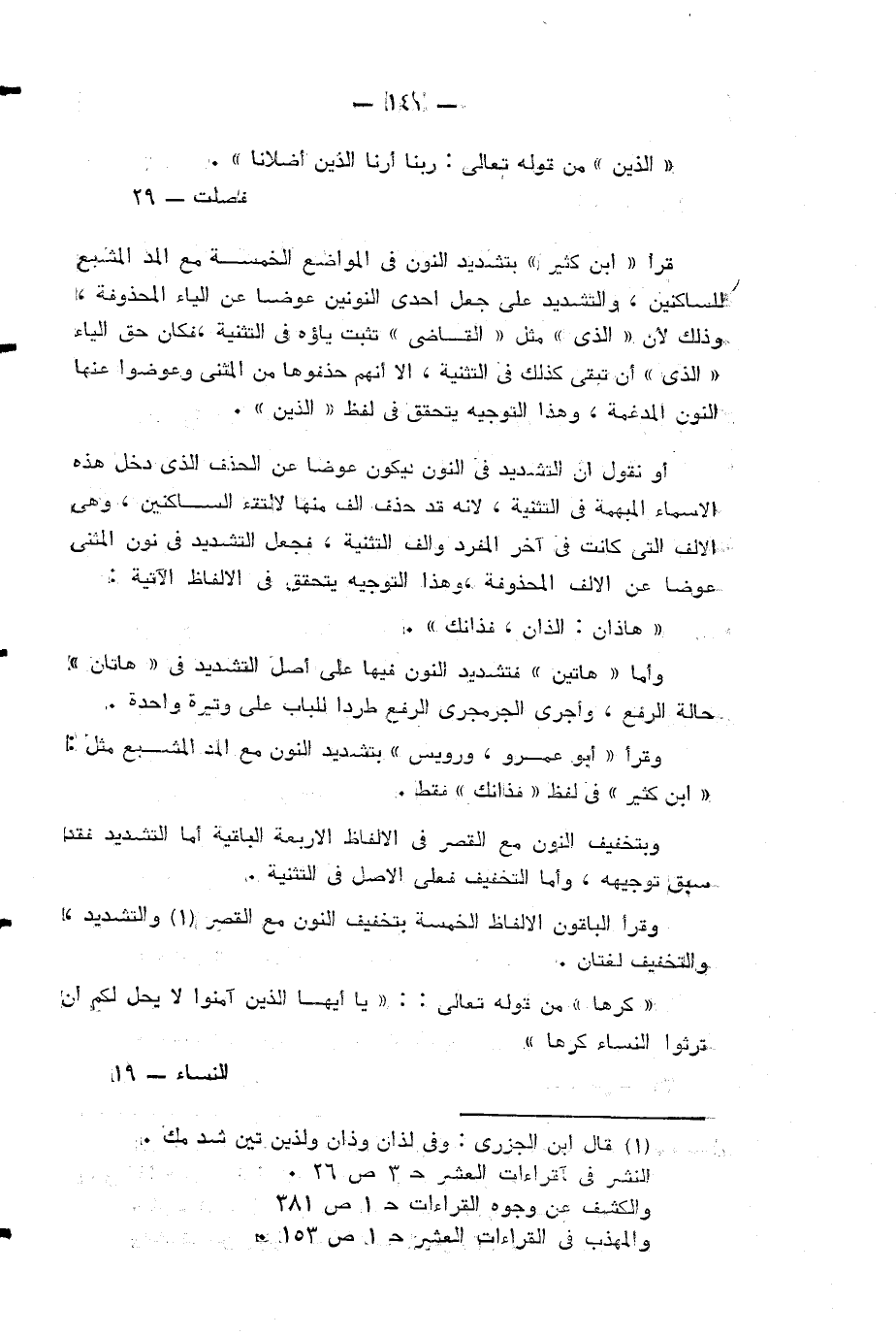 وقرأ الباقون الالفاظ الخمسة بتخفيف النون مع القصر (¬2) والتشديد، والتخفيف لغتان.