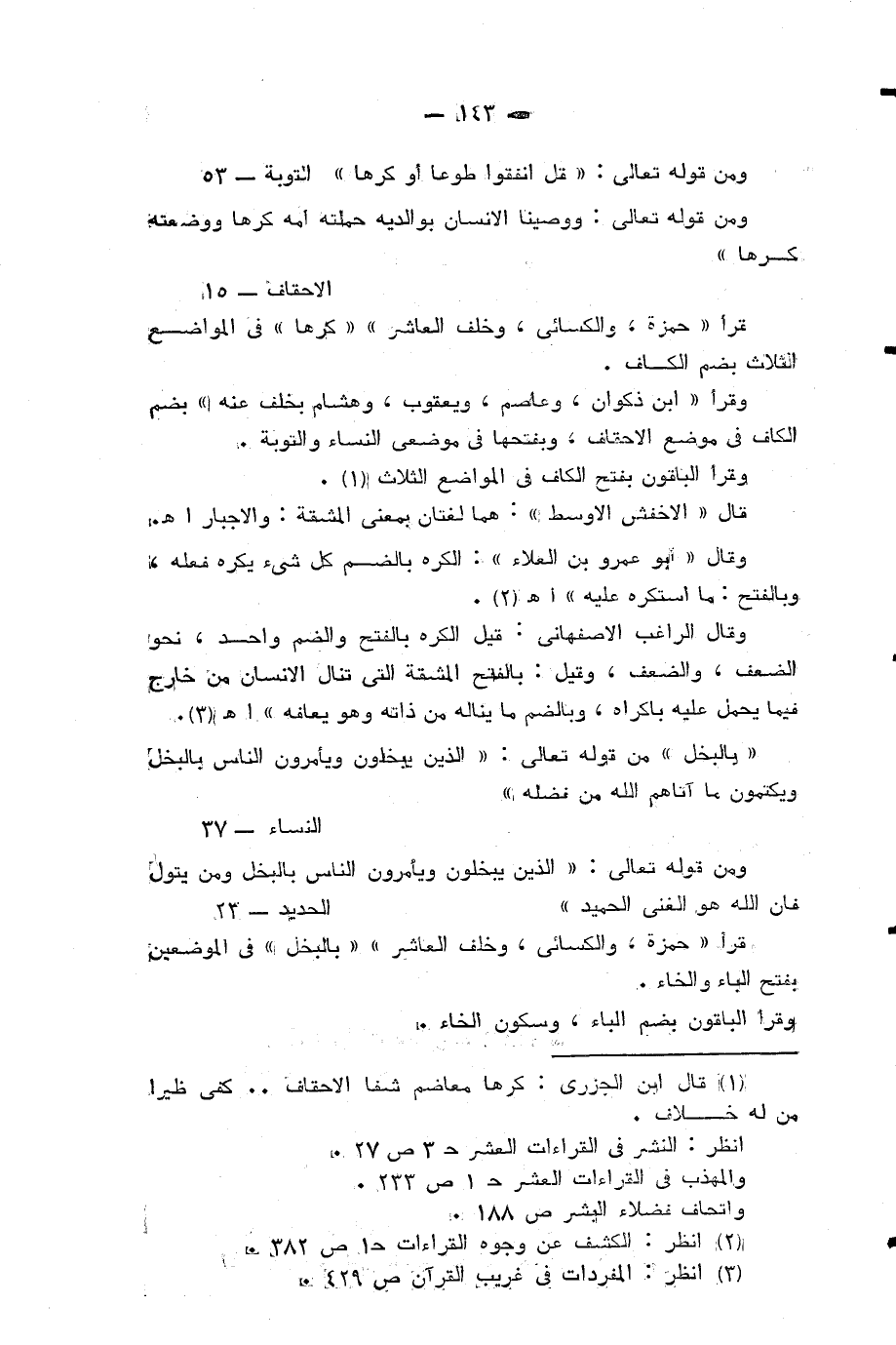 وقال الراغب الاصفهاني: قيل الكره بالفتح والضم واحد، نحو الضعف، والضعف، وقيل: بالفتح المشقة التي تنال الانسان من خارج فيما يحمل عليه باكراه، وبالضم ما يناله من ذاته وهو يعافه» اهـ (¬5).