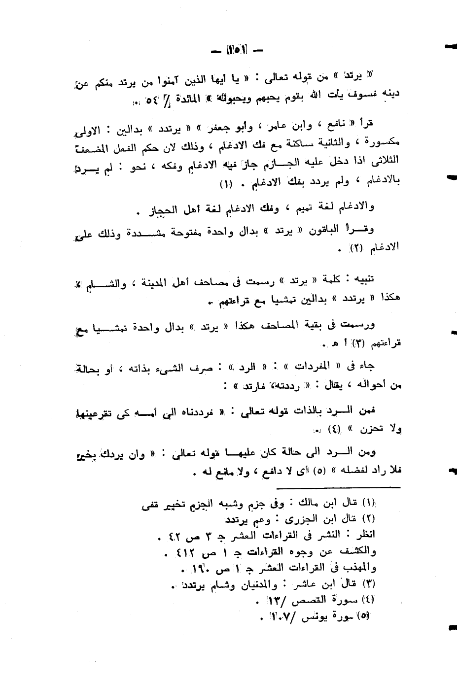 ورسمت في بقية المصاحف هكذا «يرتد» بدال واحدة تمشيا مع قراءتهم (¬4) اهـ.