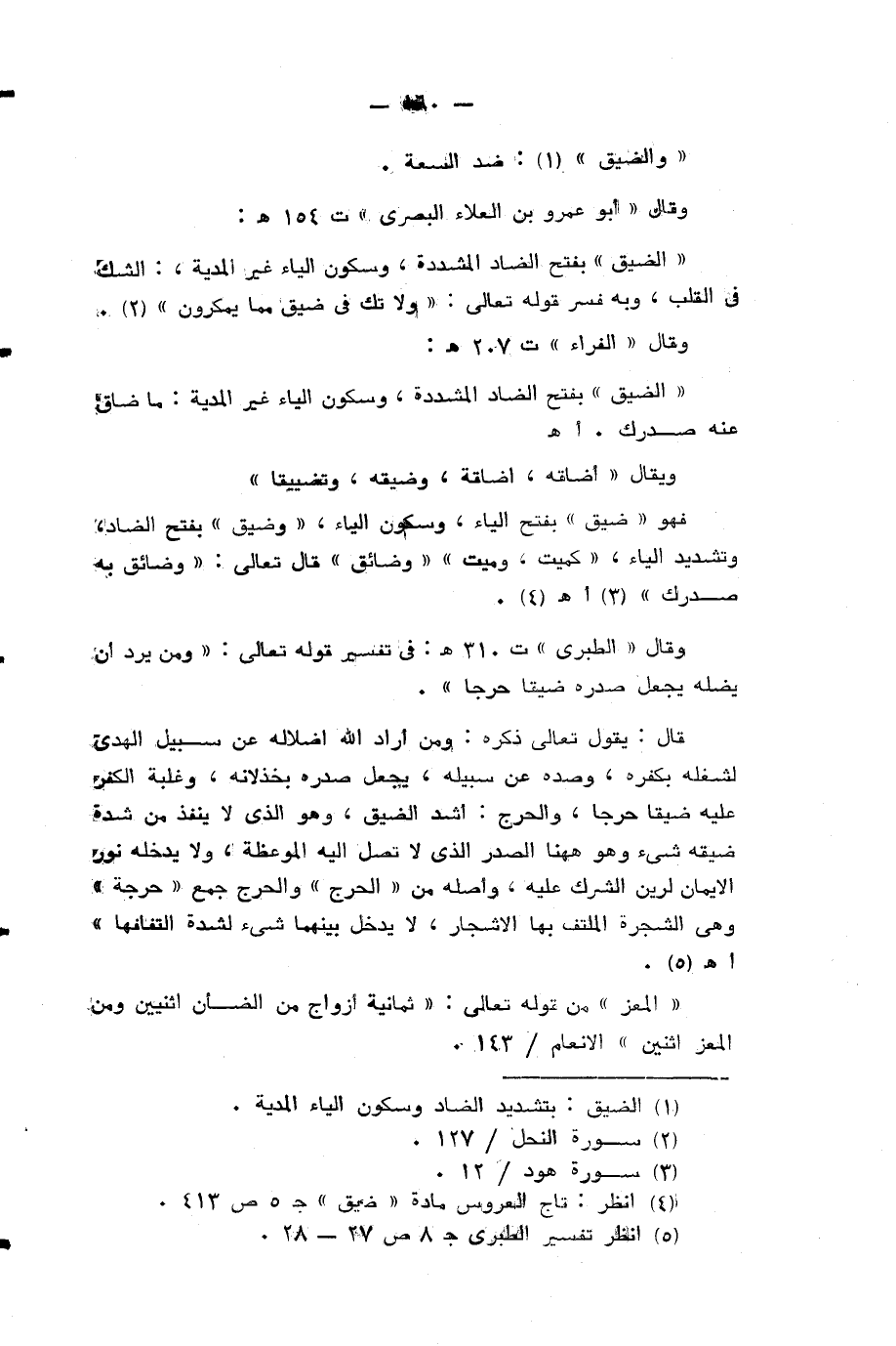(¬3) انظر: تاج العروس مادة «ضيق» ج 5 ص 413 والآية من سورة هود رقم 12.