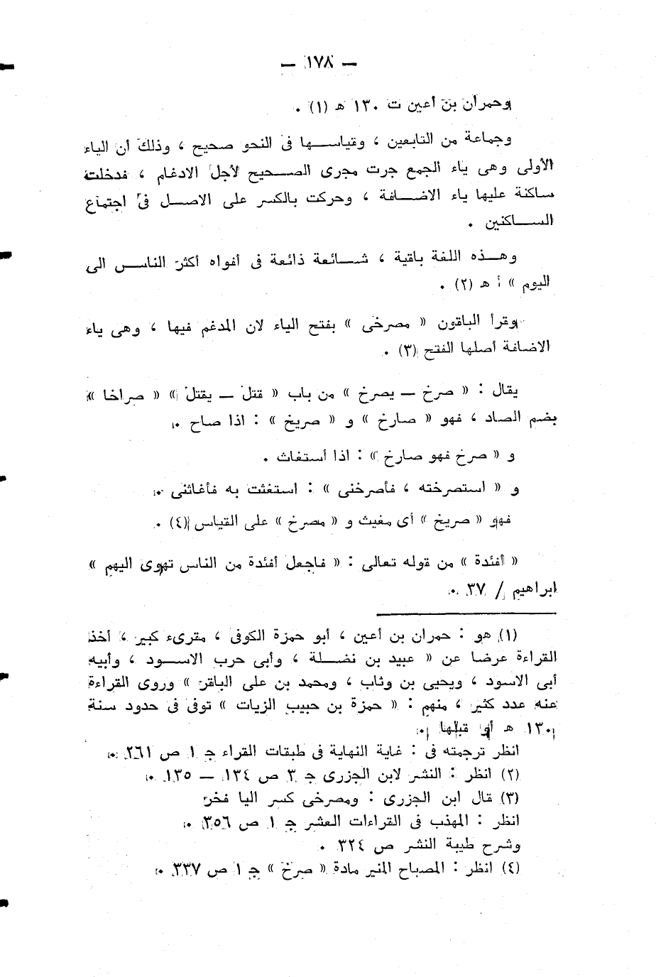 (¬1) هو: حمران بن أعين، أبو حمزة الكوفي، مقرئ كبير، أخذ القراءة عرضا عن «عبيد بن نضلة، وأبي حرب الاسود، وأبيه أبي الاسود، ويحيى بن وثاب، ومحمد بن علي الباقر» وروى القراءة عنه عدد كثير، منهم: «حمزة بن حبيب الزيات» توفي في حدود سنة 130 هـ أو قبلها.