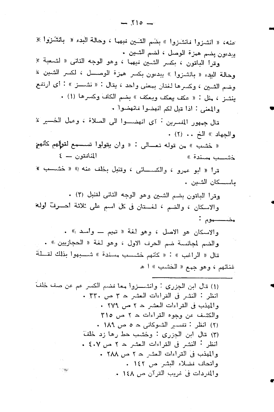 عنه «انشزوا فانشزوا» بضم الشين فيهما، وحالة البدء «بانشزوا» يبدءون بضم همزة الوصل، لضم الشين.