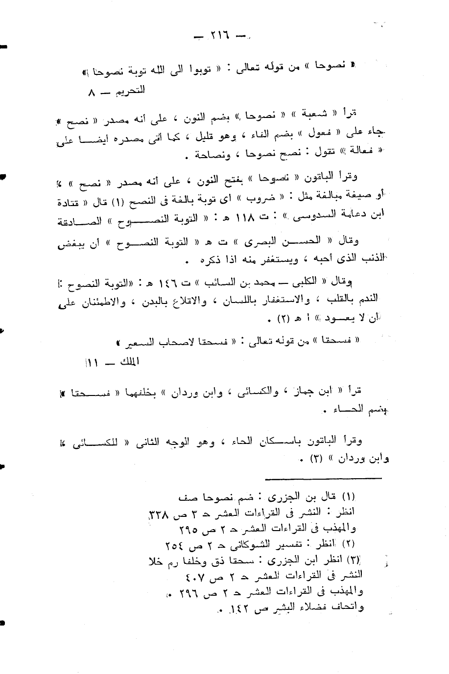(¬2) قال ابن الجزري: ضم نصوحا صف انظر: النشر في القراءات العشر ح 3 ص 338.