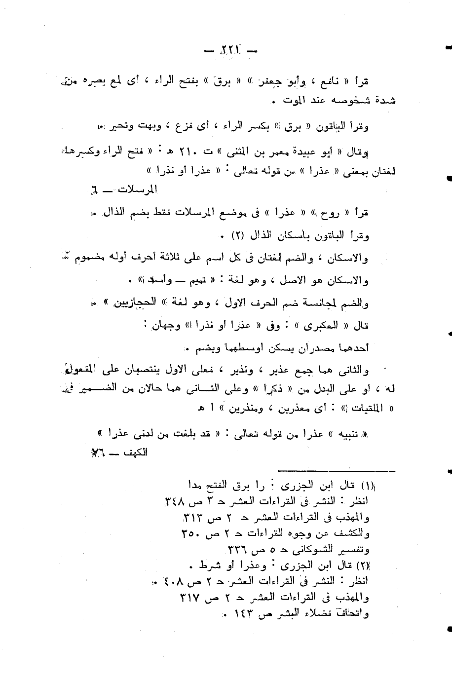 «عذرا» من قوله تعالى: عُذْراً أَوْ نُذْراً (¬2) قرأ «روح» «عذرا» في موضع المرسلات فقط بضم الذال.