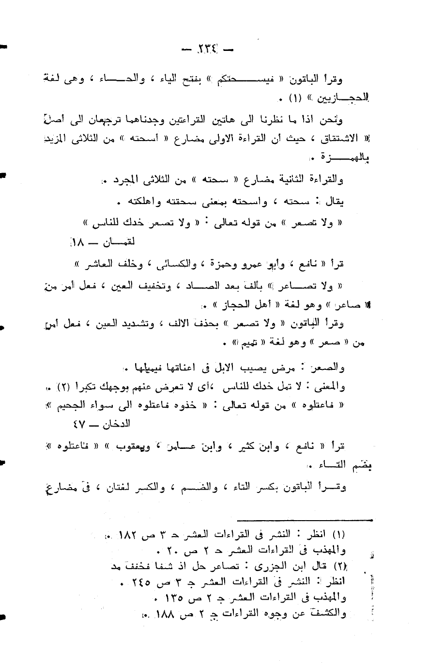 ونحن اذا ما نظرنا الى هاتين القراءتين وجدناهما ترجعان الى اصل