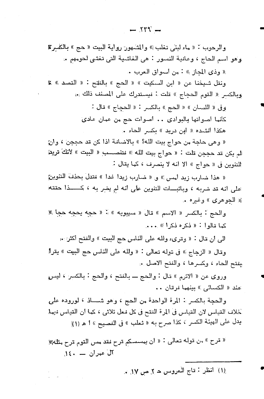 وروي عن «الاثرم» قال: والحج- بالفتح، والحج: بالكسر، ليس عند «الكسائي» بينهما فرقان ..