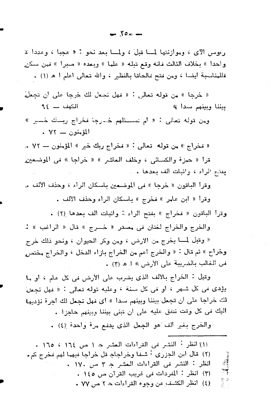 (¬4) قال ابن الجزري: شفا وخرجا قل خراجا فيهما لهم فخرج كم انظر: النشر في القراءات العشر ج 3 ص 170.
