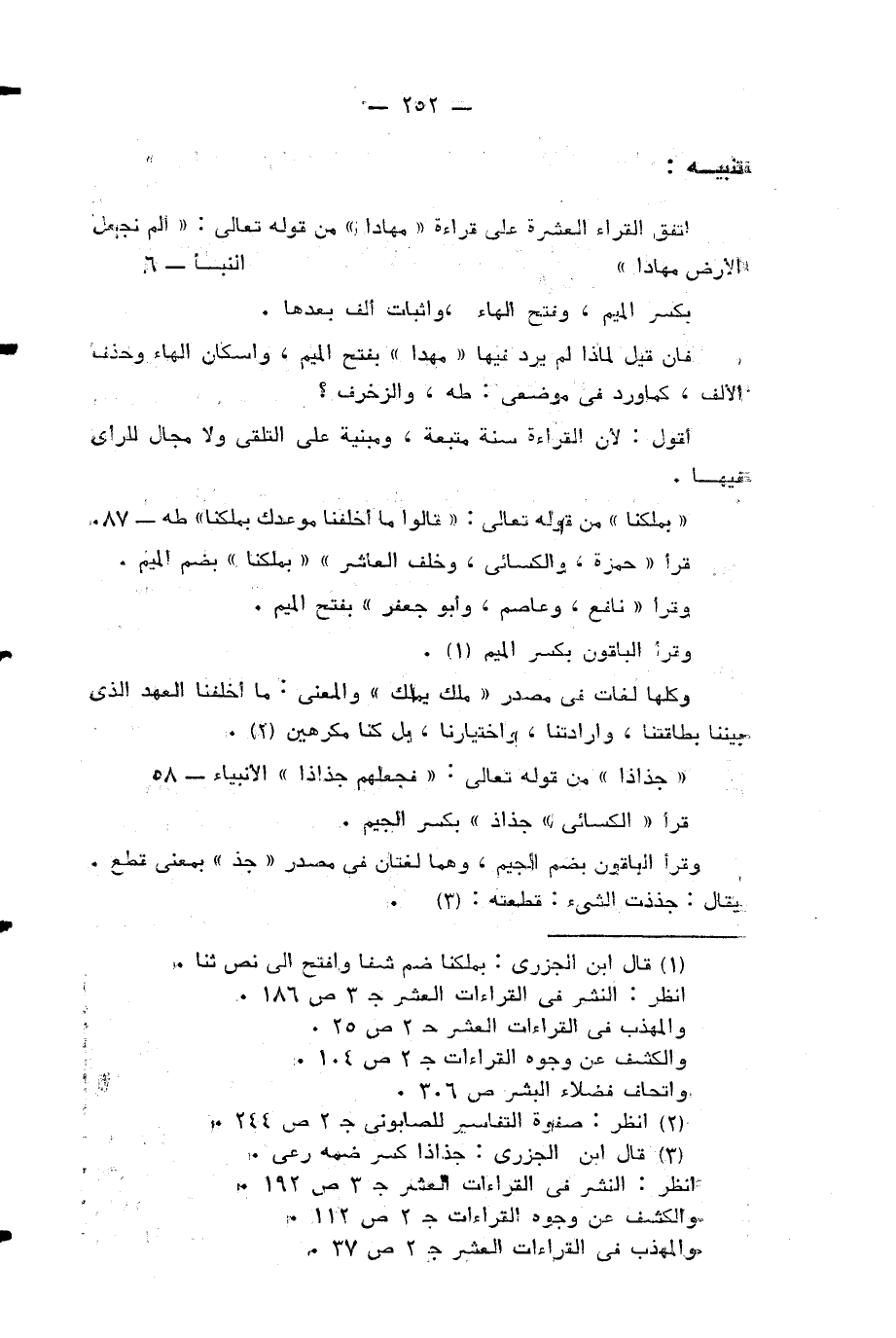 تنبيه: اتفق القراء العشرة على قراءة «مهادا» من قوله تعالى: أَلَمْ نَجْعَلِ الْأَرْضَ مِهاداً (¬1)