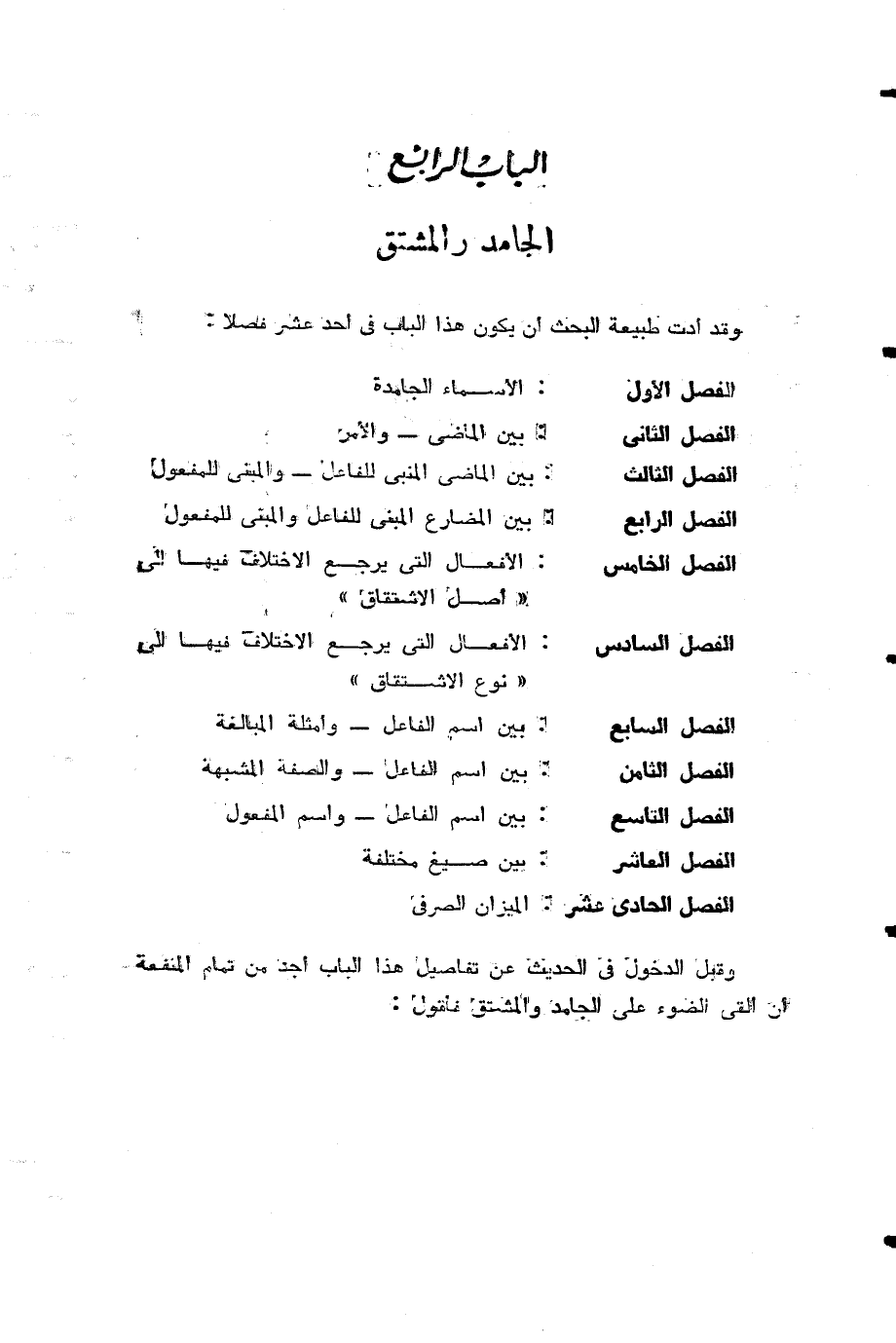 الفصل العاشر: بين صيغ مختلفة الفصل الحادي عشر: الميزان الصرفي وقبل الدخول في الحديث عن تفاصيل هذا الباب اجد من تمام المنفعة ان ألقي الضوء على الجامد والمشتق فأقول:
