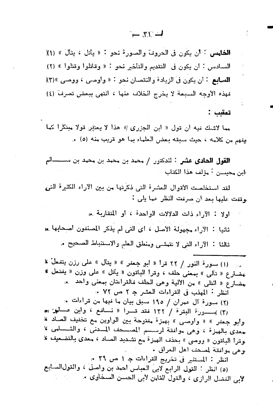 (¬4) انظر: القول الرابع لأبي العباس أحمد بن واصل، والقول السابع لأبي الفضل الرازي، والقول الثامن لأبي الحسن السخاوي.