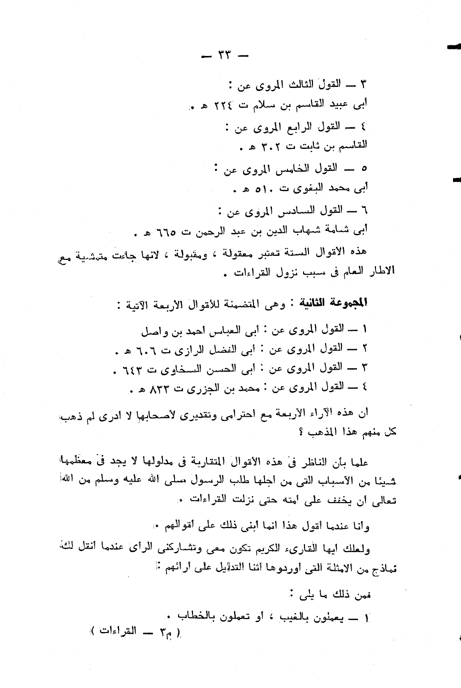 علما بأن الناظر في هذه الأقوال المتقاربة في مدلولها لا يجد في معظمها شيئا من الأسباب التي من اجلها طلب الرسول صلى الله عليه وسلم من الله تعالى أن يخفف على أمته حتى نزلت القراءات.