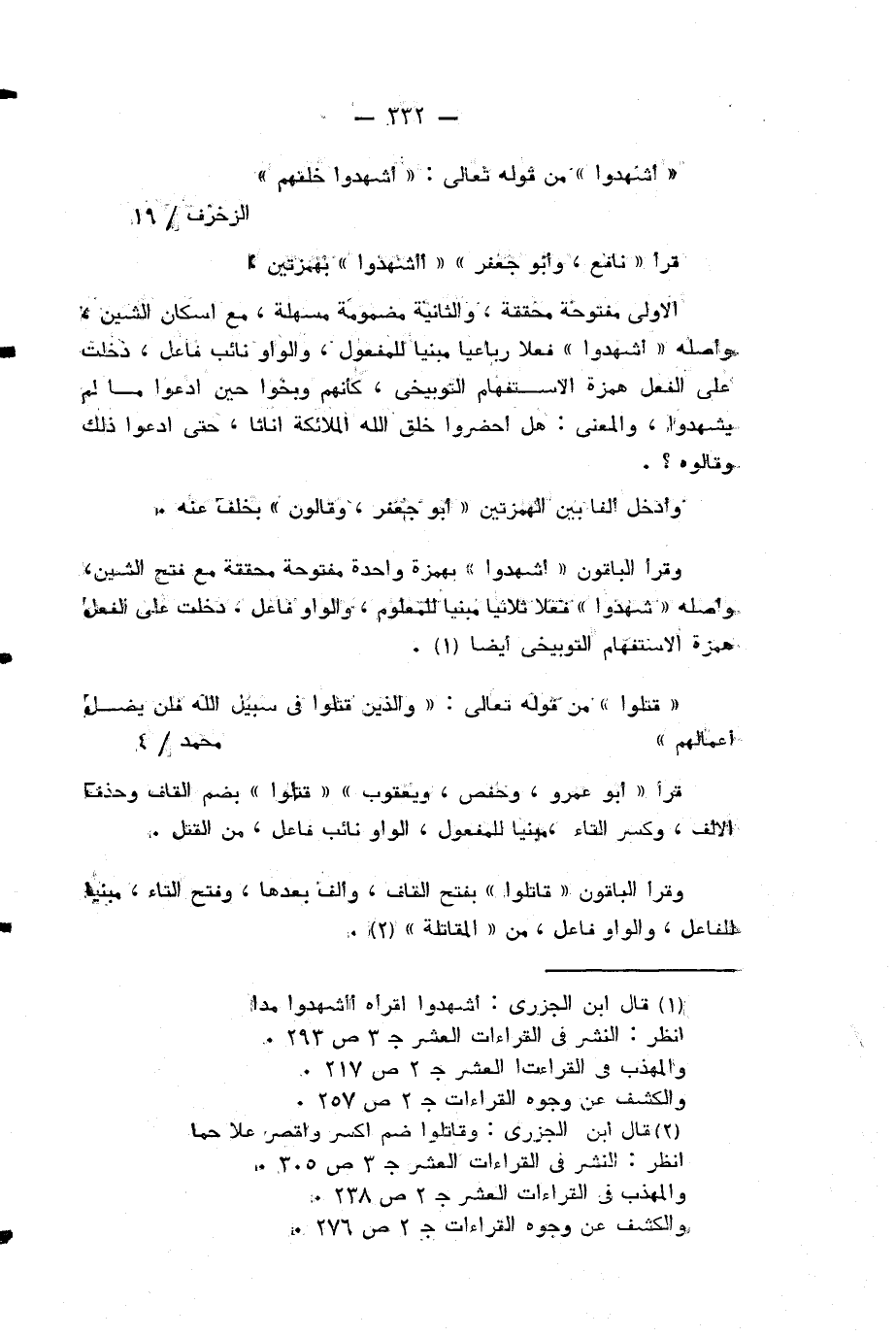 والمهذب في القراءات العشر ج 2 ص 217 والكشف عن وجوه القراءات ج 2 ص 257.