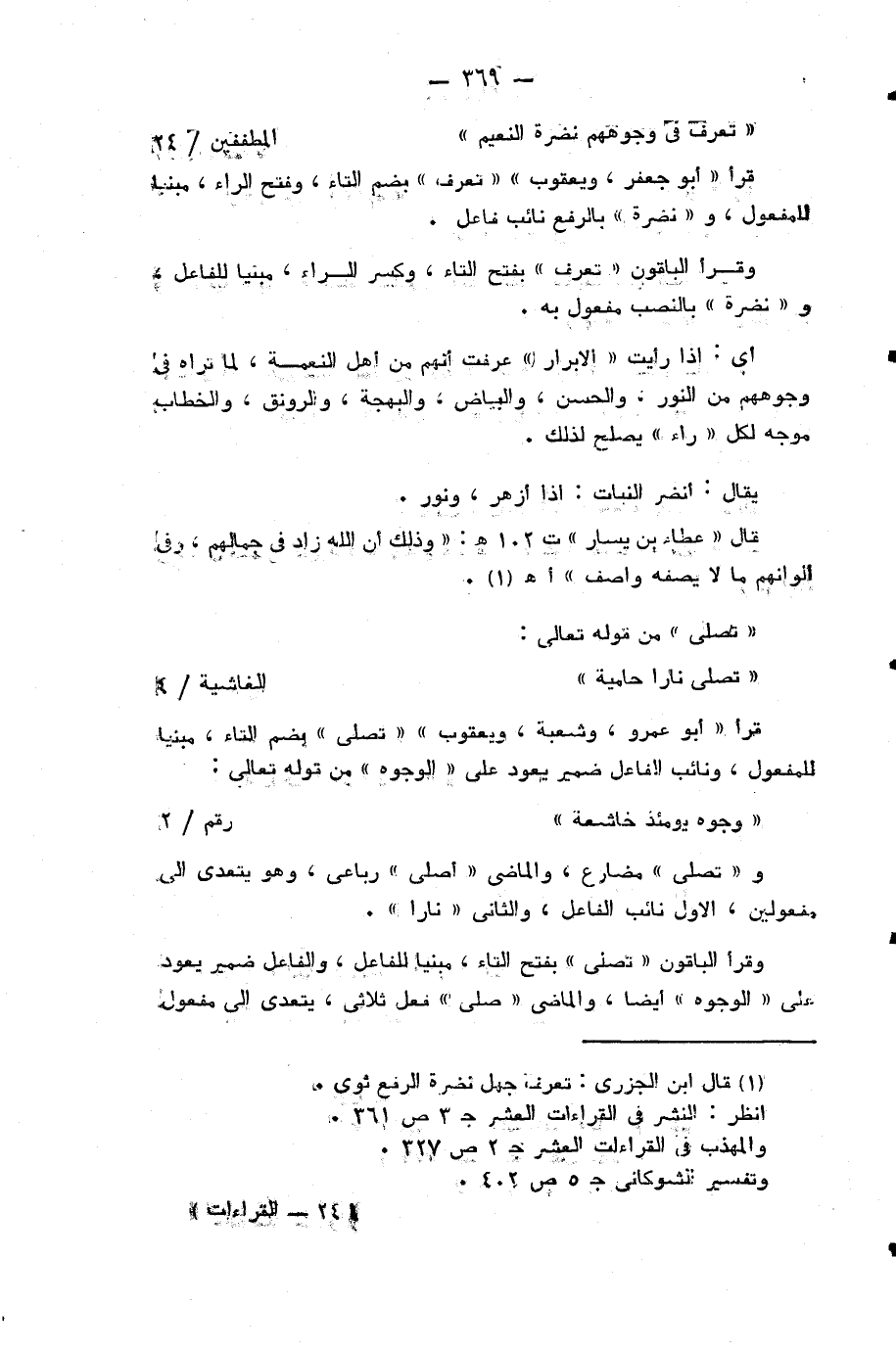 قرأ «أبو جعفر، ويعقوب» «تعرف» بضم التاء، وفتح الراء، مبنيا للمفعول، و «نضرة» بالرفع نائب فاعل.